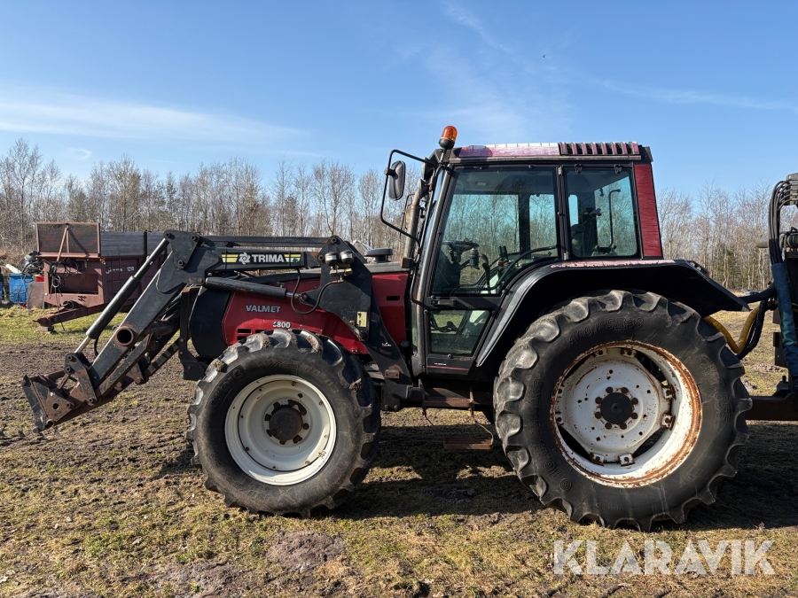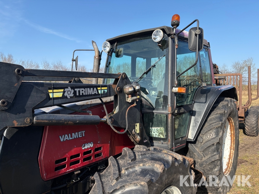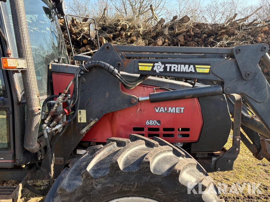 Traktor Valmet 6800 med frontlæsser & skovvogn & kranarm