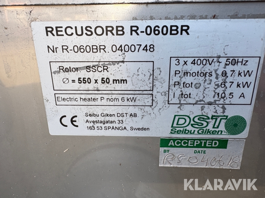 Sorptionsaffugter / industri affugter DST Seibu Giken R-060BR