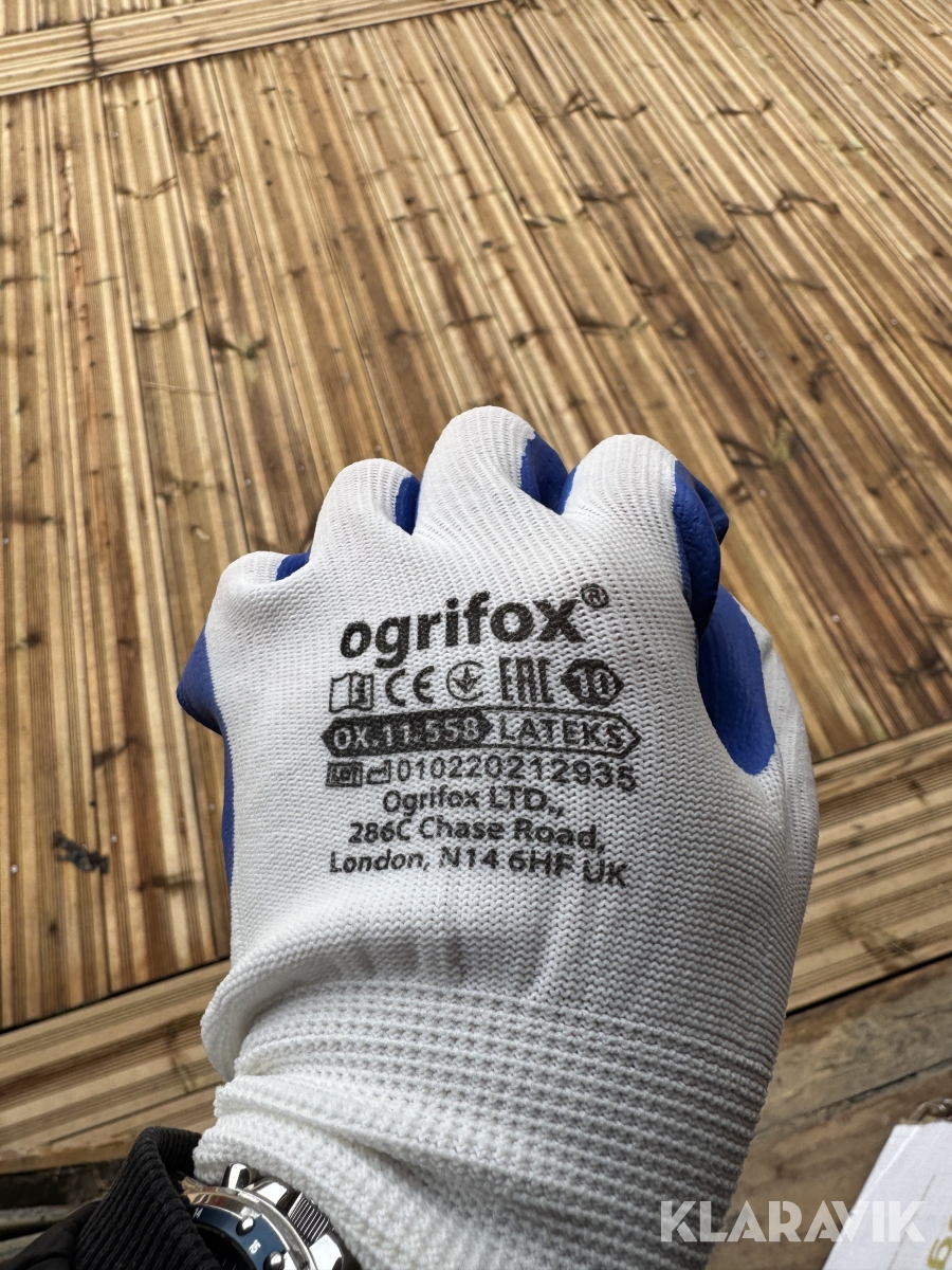 Arbejdshandsker Ogrifox blå/hvid 1 kasse (240 par)