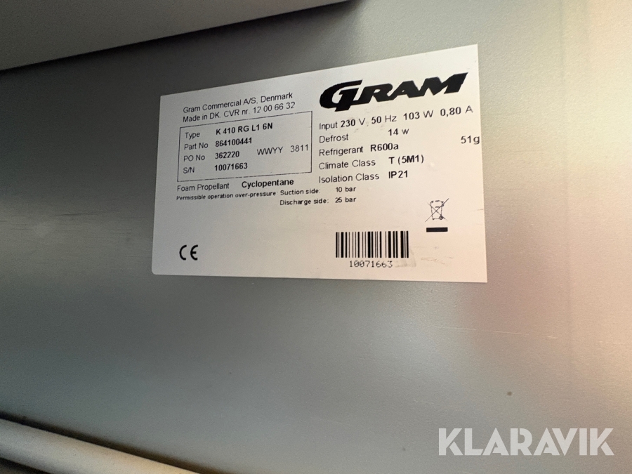 Industrikøleskab Gram K410rgl16n