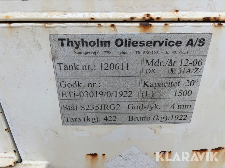 Transportabel dieseltanken Thyholm Olie Service 1500 Liter