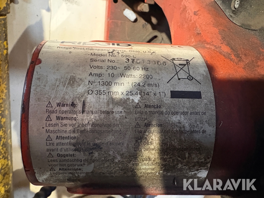 Metalrundsav Ridgid 590-L + hydraulisk håndpumpe