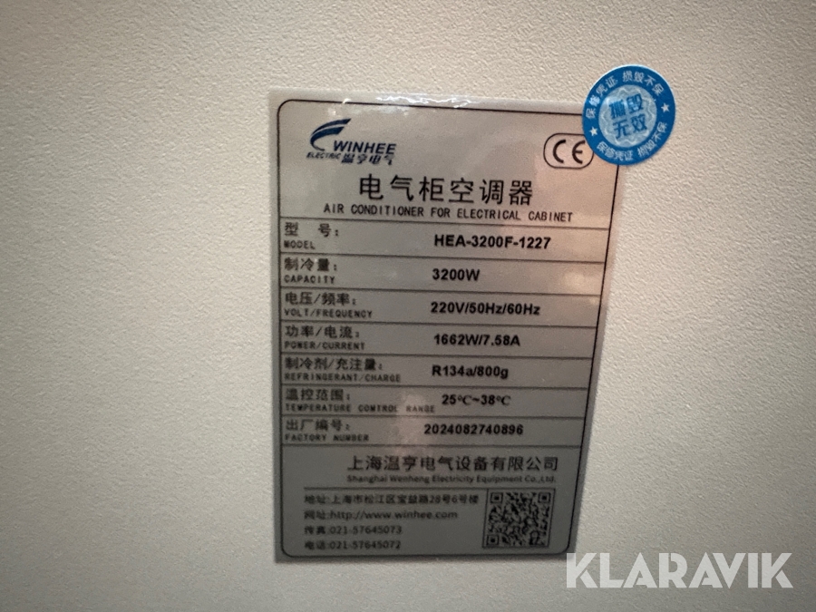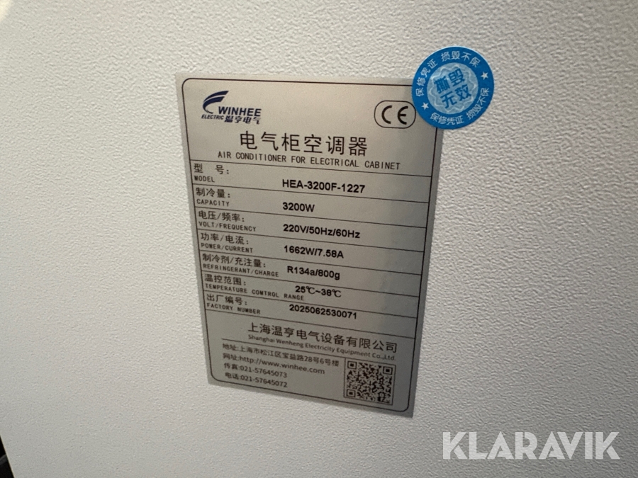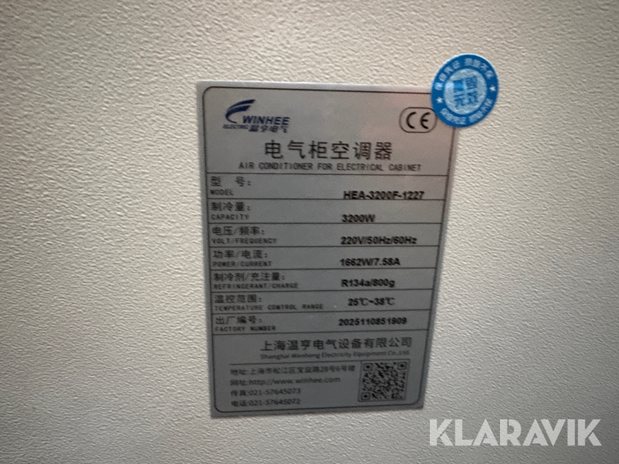 Aircondition til el-skabe Winhee HEA-3200F-1227 4 styk
