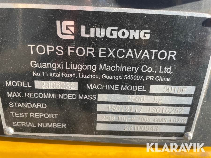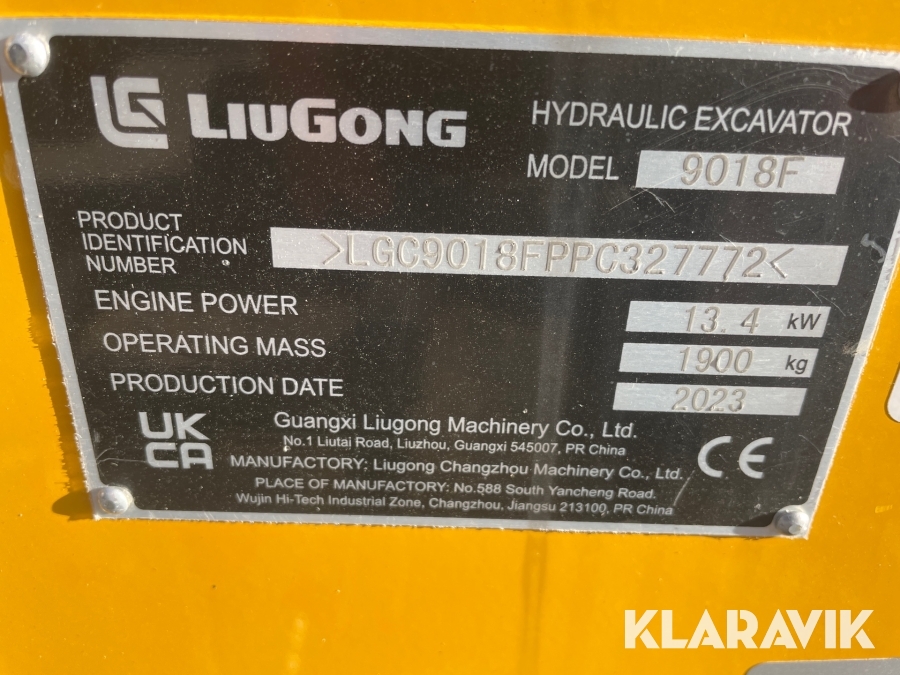 Gravemaskine Liugong 9018F med compacttilt og skovle