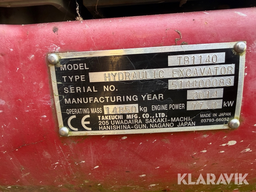 Gravemaskine Takeuchi TB 1140 series 2
