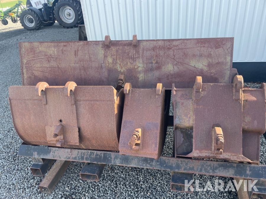 Diverse skovle og skovlstativ