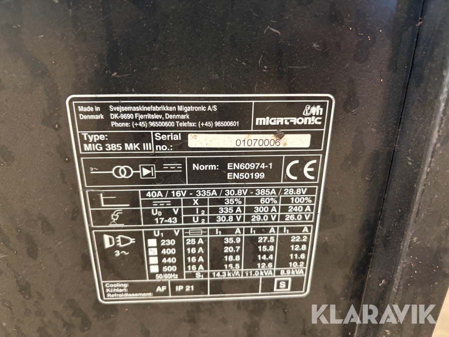 Svejsemaskine Migatronic MIG 385 MK III 1 styk