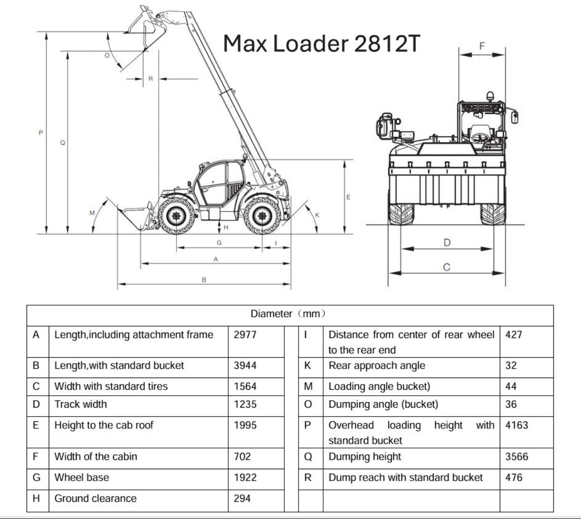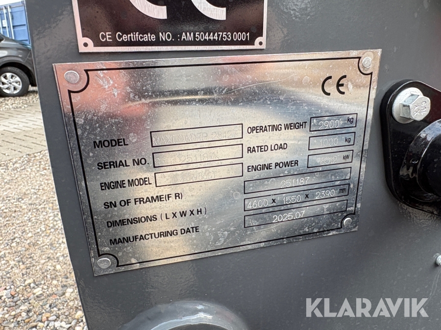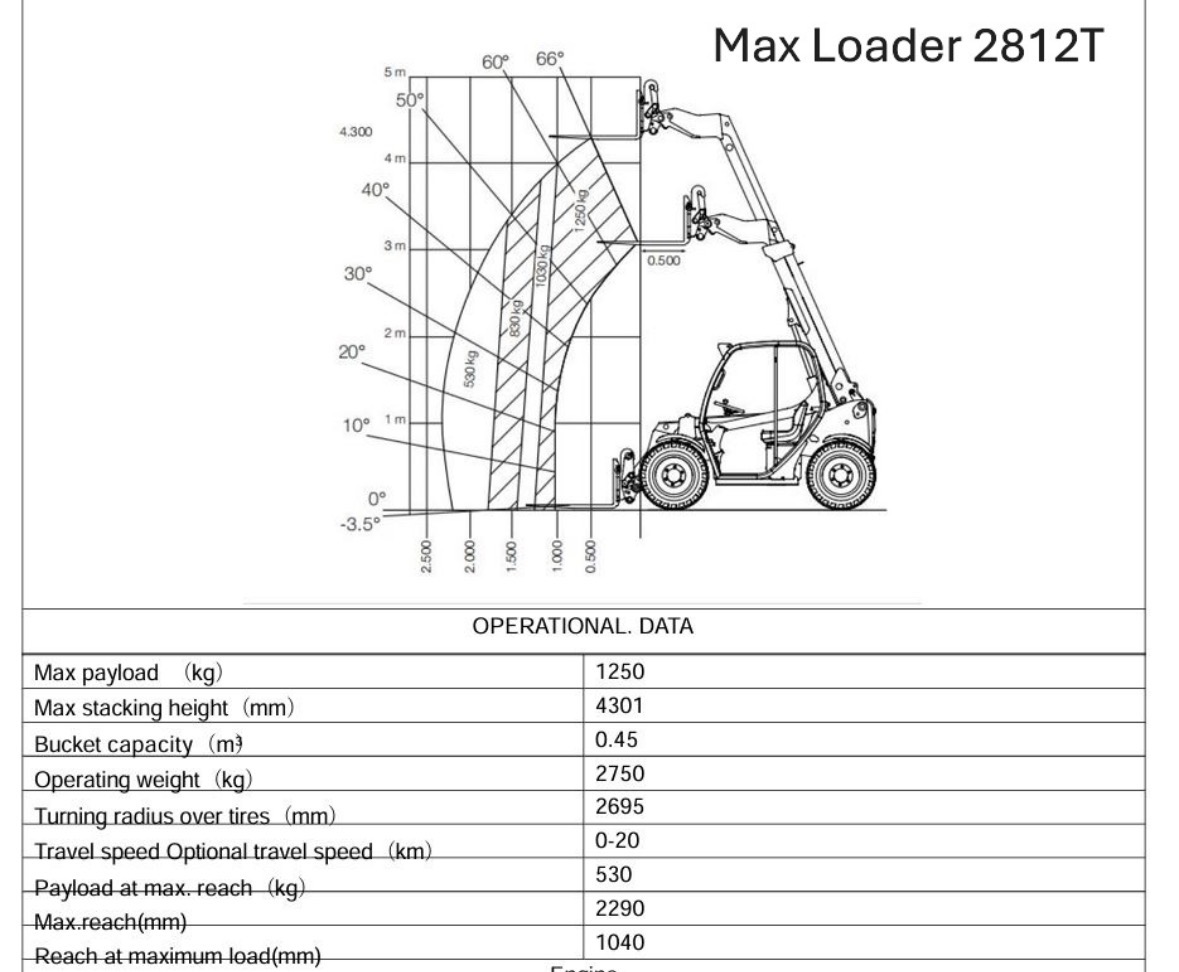 Teleskoplæsser Max Loader 2812T med skovl og gafler