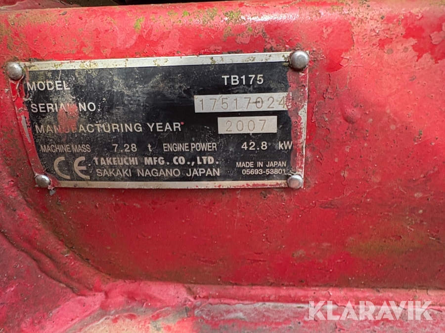 Gravemaskine Takeuchi TB175 7,5 tons