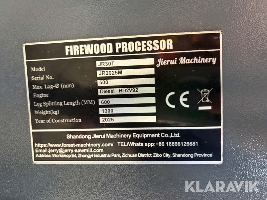 Save/flækkeanlæg Jieru 30T Firewood Processor