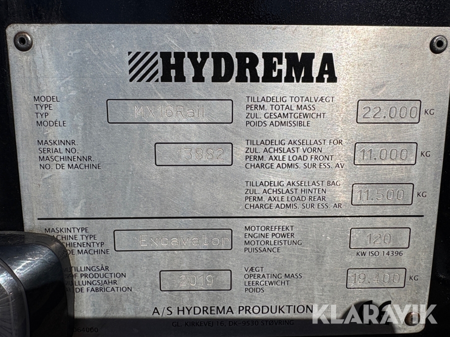Gravemaskine Hydrema MX16Rail