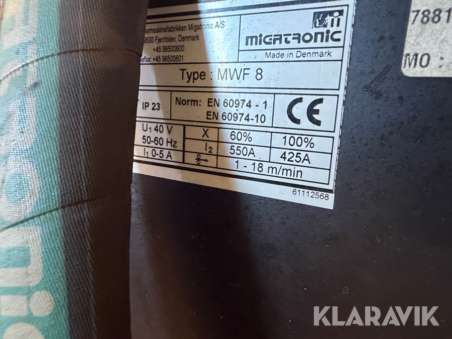 Svejsemaskine Migatronic MIG 305 MK III + Tråd fremfører: MWF 8 1 styk