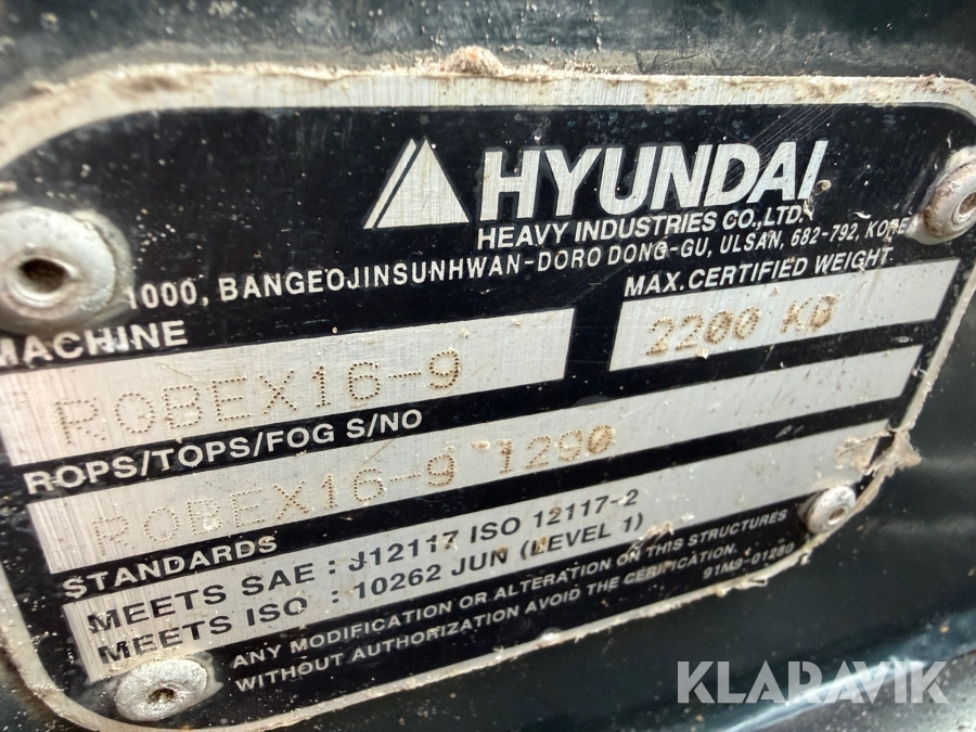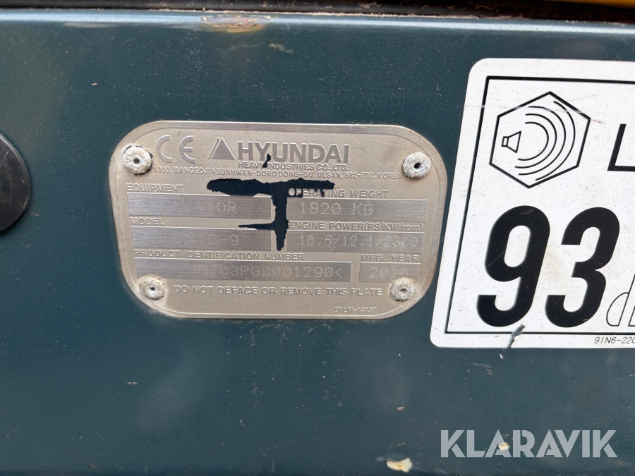 Gravemaskine Hyundai 16.9 med skovlpakke