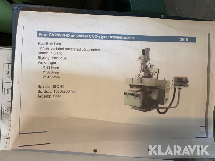Fræsemaskine First CV205VHD - CNC-styret