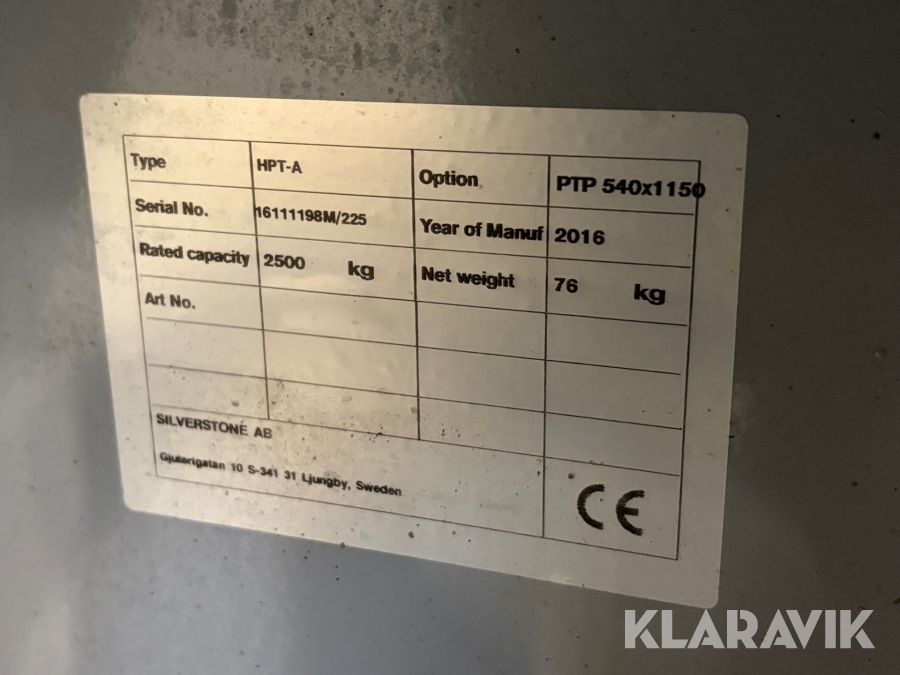 Som køber skal du kontrollere objektet ved afhentning Herefter kan der ikke gøres indvendinger. Hvis objektet adskiller sig væsentligt fra beskrivelsen, skal Klaravik kontaktes inden objektet fragtes (bemærk, at der gælder særskilte vilkår for konkursauktioner). Alle objekt findes hos den sælgende virksomhed, og du som køber har ansvar for afhentning og fragt. Som køber har du 12 dage til at afhente objektet, efter auktionen er afsluttet.