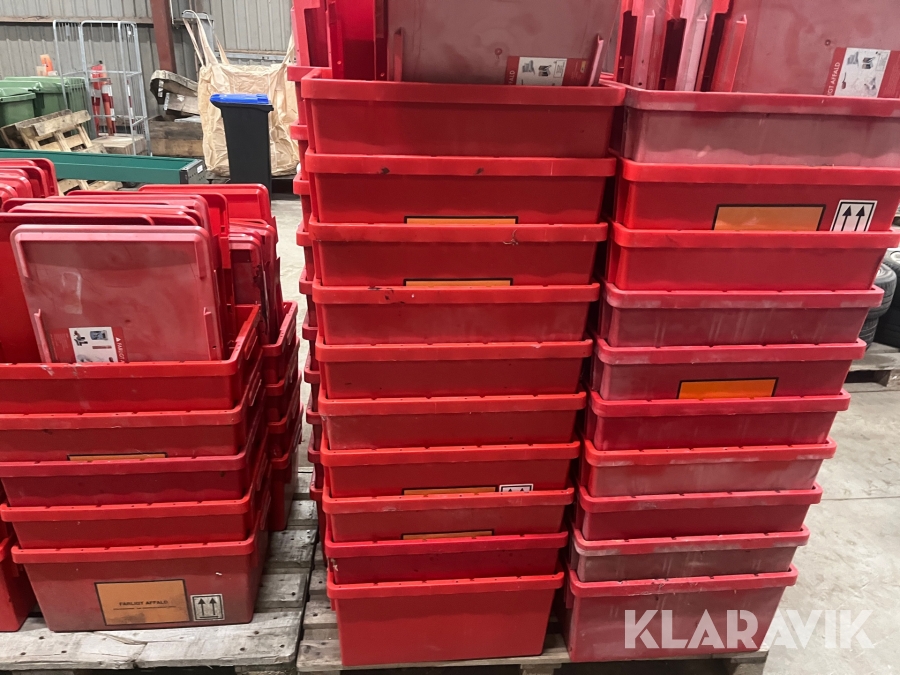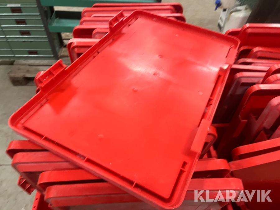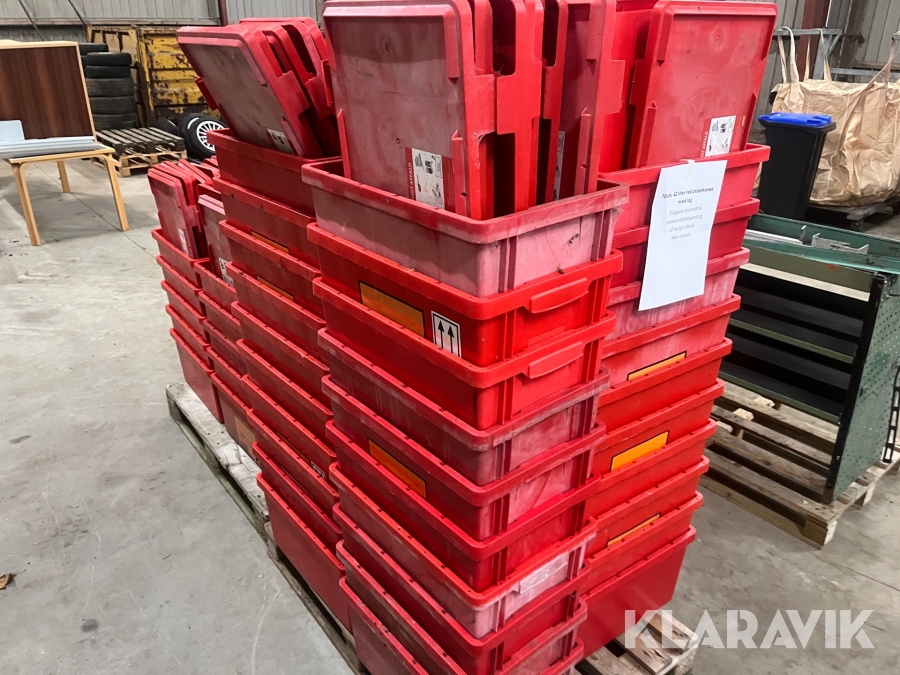 Røde plastkasser Med låg 42liter 70 styk
