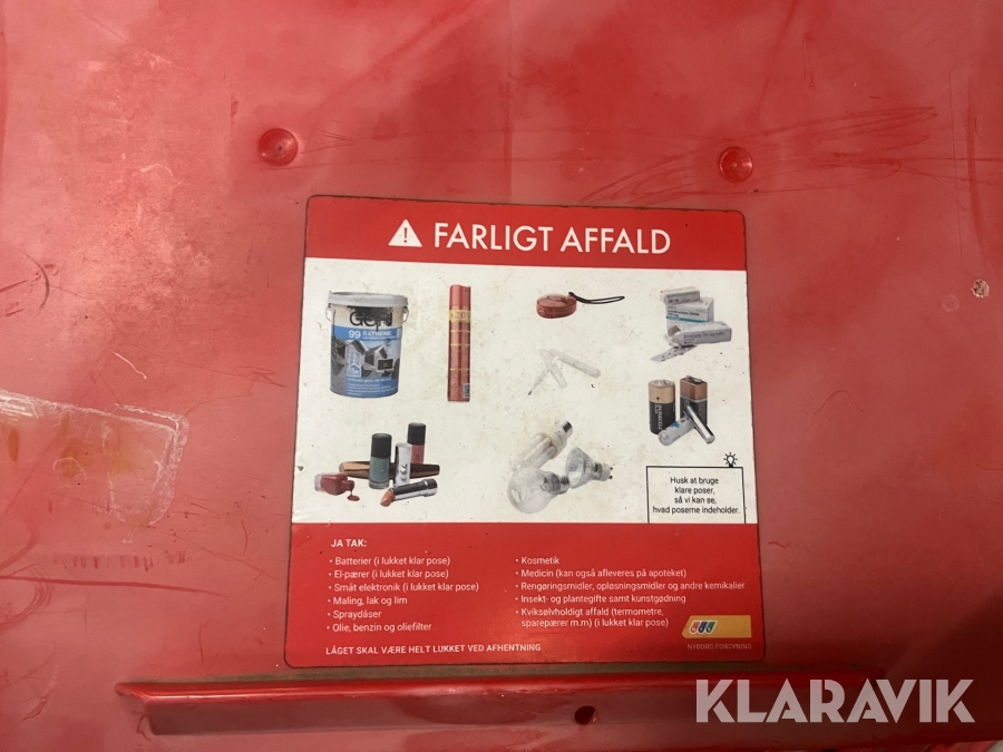 Som køber skal du kontrollere objektet ved afhentning Herefter kan der ikke gøres indvendinger. Hvis objektet adskiller sig væsentligt fra beskrivelsen, skal Klaravik kontaktes inden objektet fragtes (bemærk, at der gælder særskilte vilkår for konkursauktioner). Alle objekt findes hos den sælgende virksomhed, og du som køber har ansvar for afhentning og fragt. Som køber har du 12 dage til at afhente objektet, efter auktionen er afsluttet.