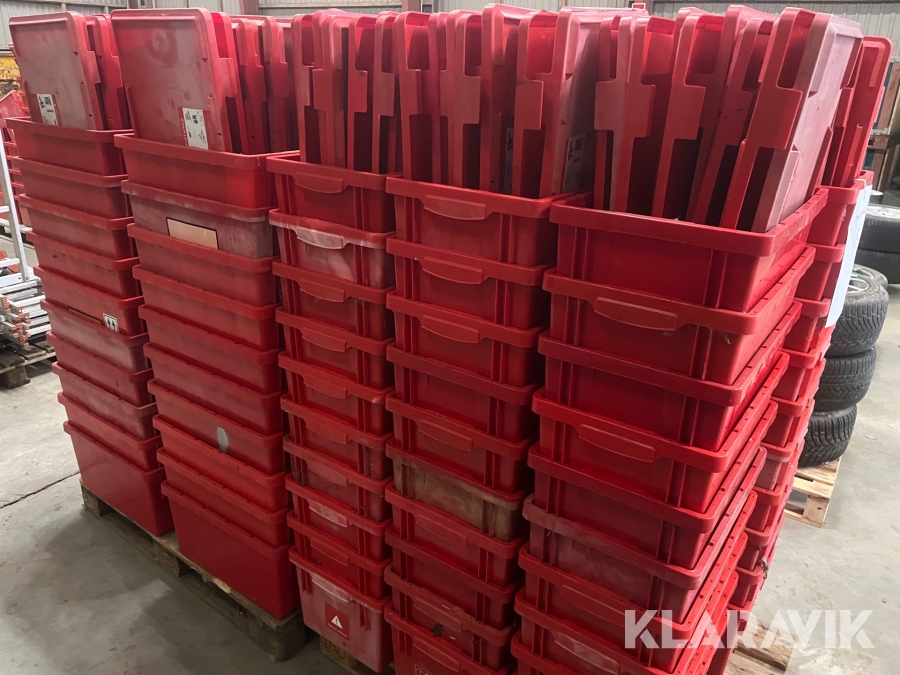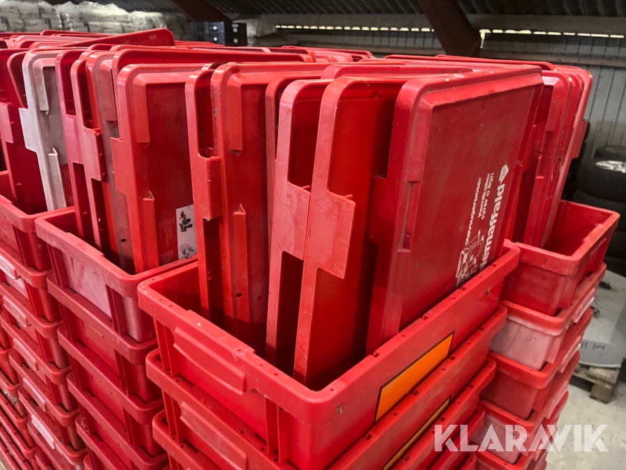 Røde plastkasser Med låg 42liter 100styk