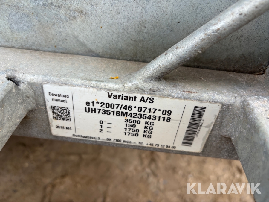 Maskinetrailer Variant 3518M4 100 km/t - 2-akslet - 3500kg