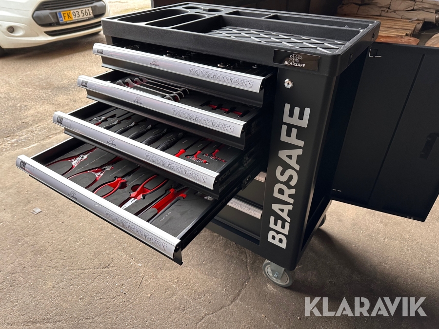 Værktøjsvogn Bearsafe med 6 skuffer og 245 dele