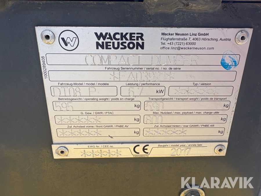 Motorbøre / lille dumper Wacker Neuson DT08 P