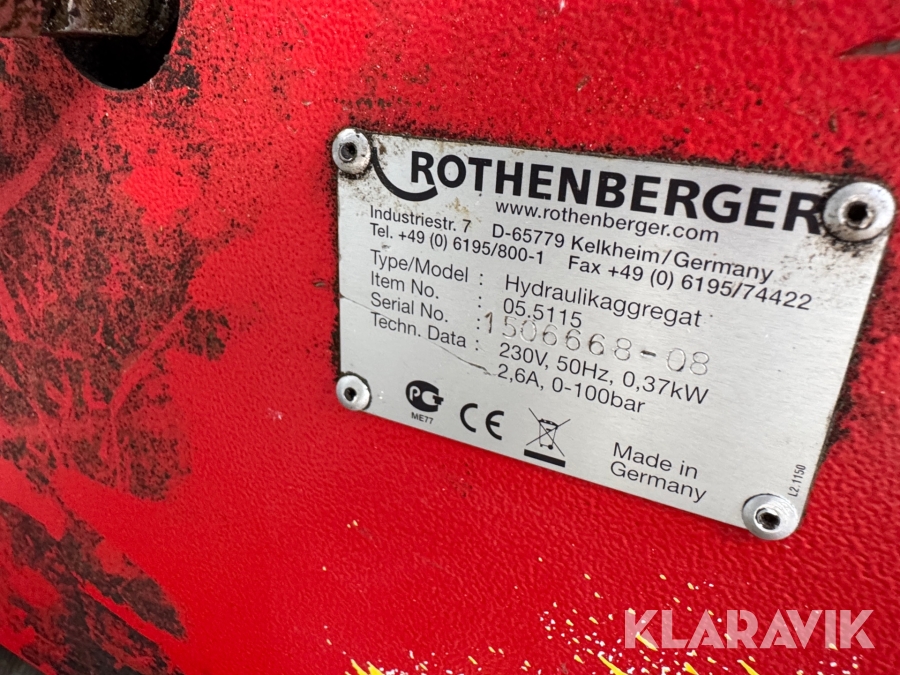 Svejsemaskine til plast Rothenberger Hydraulisk aggregat