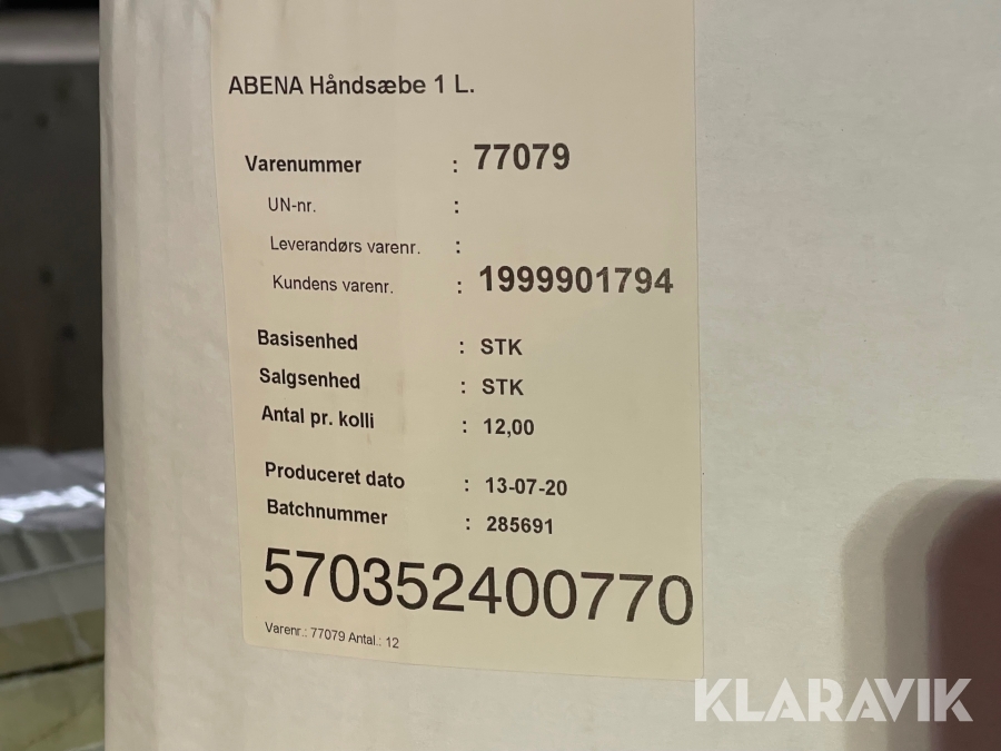 Flydende håndsæbe Abena 1 liter A- og C kvalitet, 324 styk.