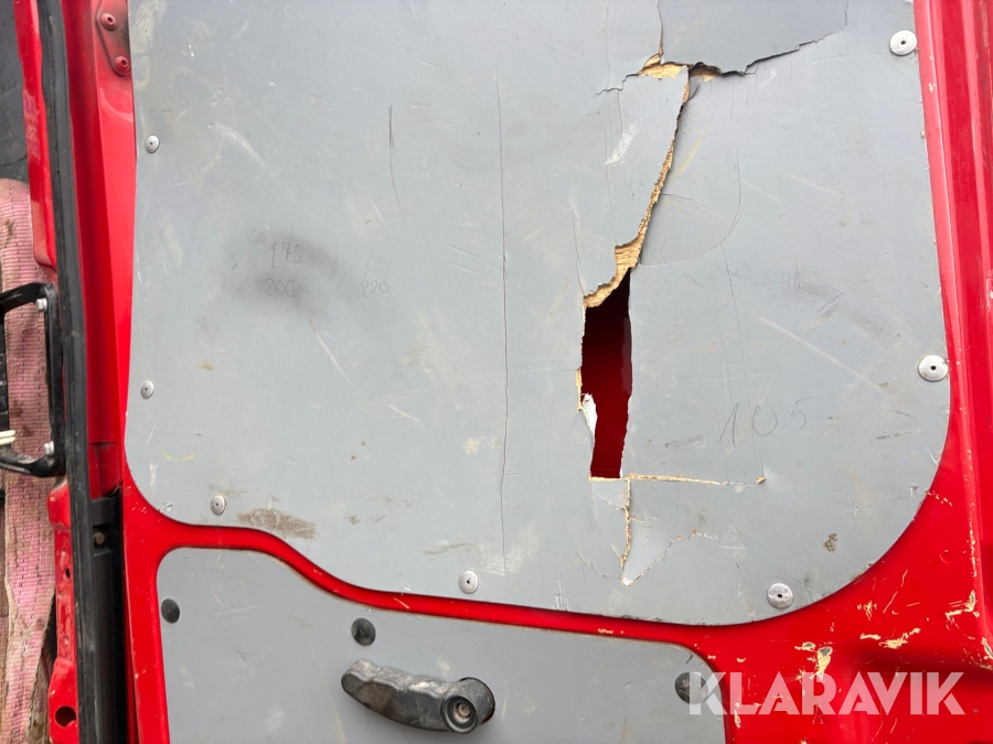 Enkelte huller i beklædning på inderside af bagdøre .
