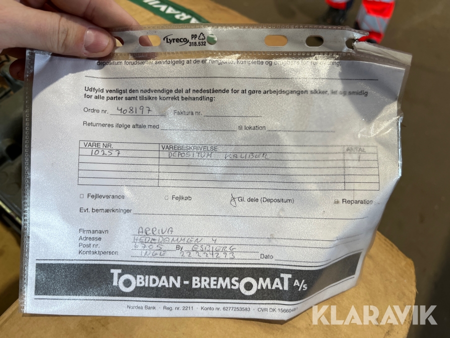 Som køber skal du kontrollere objektet ved afhentning Herefter kan der ikke gøres indvendinger. Hvis objektet adskiller sig væsentligt fra beskrivelsen, skal Klaravik kontaktes inden objektet fragtes (bemærk, at der gælder særskilte vilkår for konkursauktioner). Alle objekt findes hos den sælgende virksomhed, og du som køber har ansvar for afhentning og fragt. Som køber har du 12 dage til at afhente objektet, efter auktionen er afsluttet.