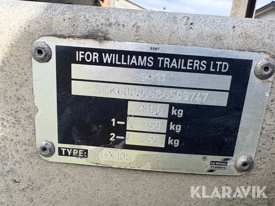 Maskintrailer Ifor Williams GX 105Ramp 2700 kg. - 2 akslet