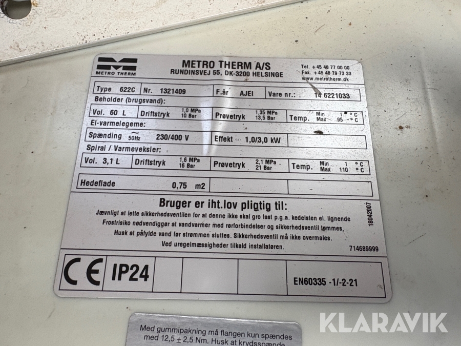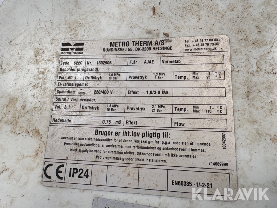 Varmtvandsbeholder Metro therm 622c 2 styk