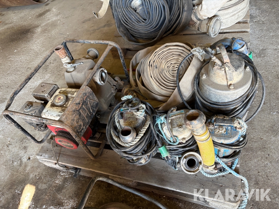 Lot. Pumper Robot Pompen SPT Grundfos Honda 7 styk med brandslanger