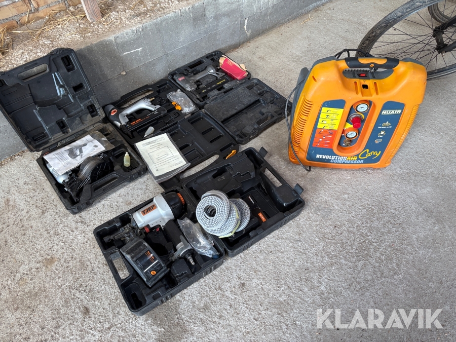 Sømpistoler og kompressor Tjep, Senco MX50, 90/40, ZE-65 finishpro 18, 4 styk.