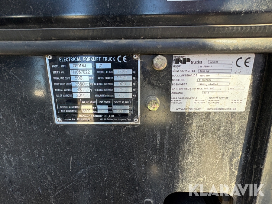 Elektrisk truck Hangcha CPD18J-C1 med udskydergaffel
