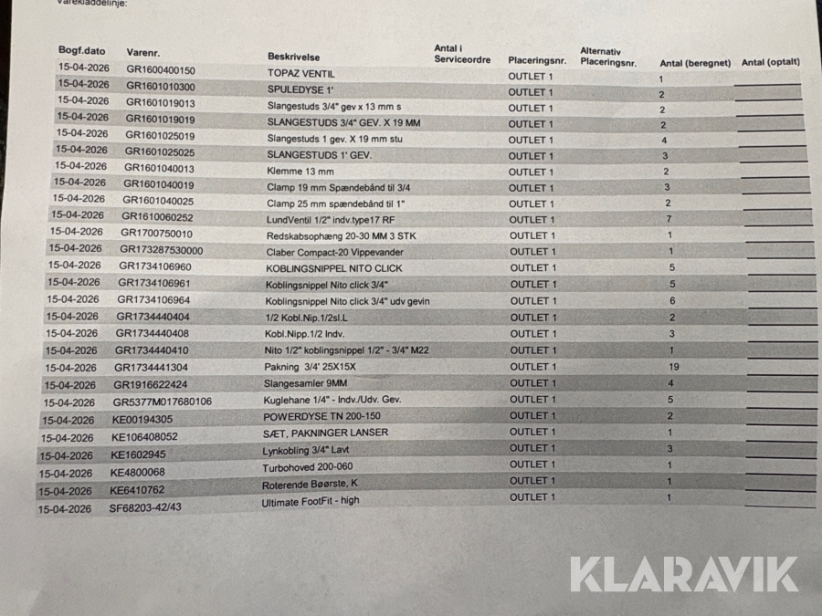Som køber skal du kontrollere objektet ved afhentning Herefter kan der ikke gøres indvendinger. Hvis objektet adskiller sig væsentligt fra beskrivelsen, skal Klaravik kontaktes inden objektet fragtes (bemærk, at der gælder særskilte vilkår for konkursauktioner). Alle objekt findes hos den sælgende virksomhed, og du som køber har ansvar for afhentning og fragt. Som køber har du 12 dage til at afhente objektet, efter auktionen er afsluttet.