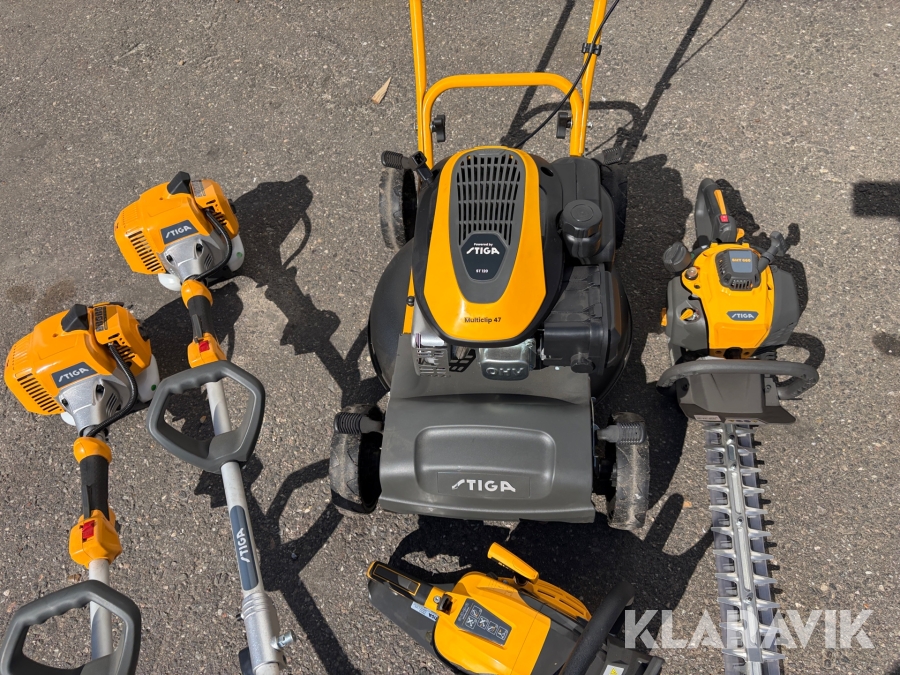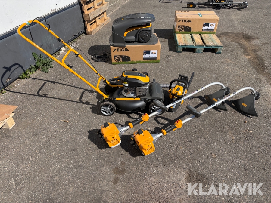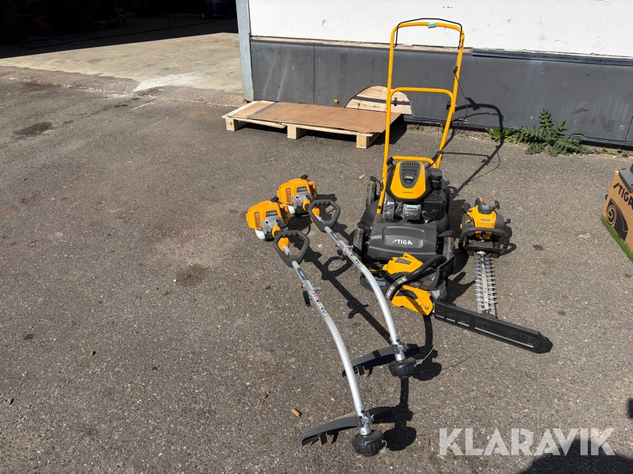 Haveredskaber Stiga plæneklipper, græstrimmer, motorsav og hækkeklipper