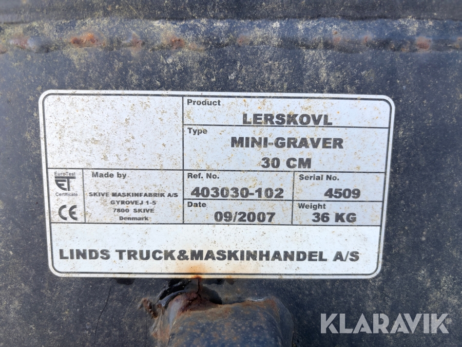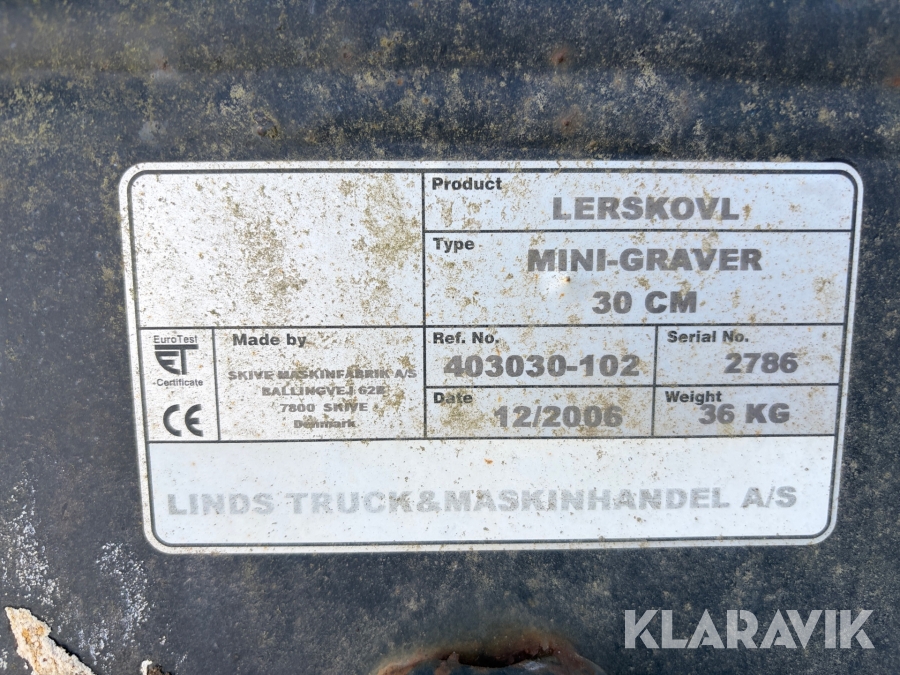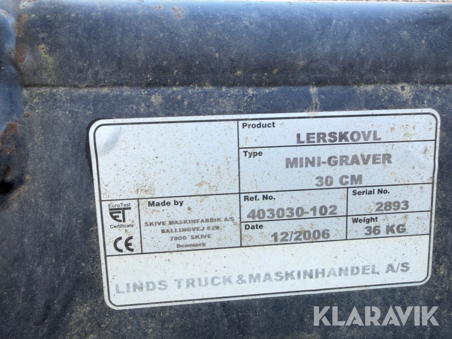 Lerskovle Skive Maskinfabrik 20 cm 1 styk og 30 cm 3 styk til minigraver