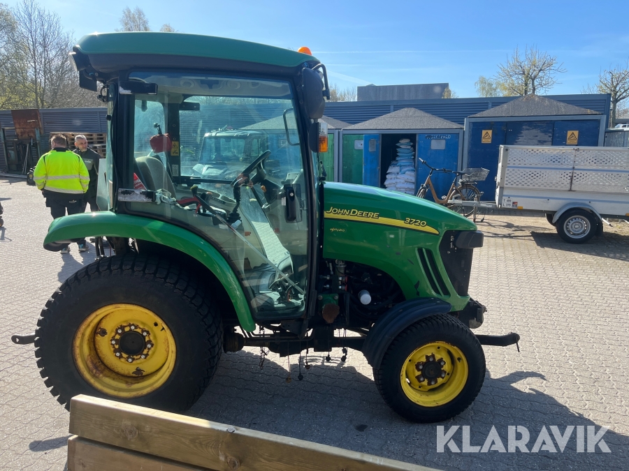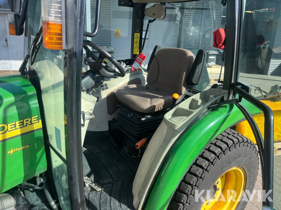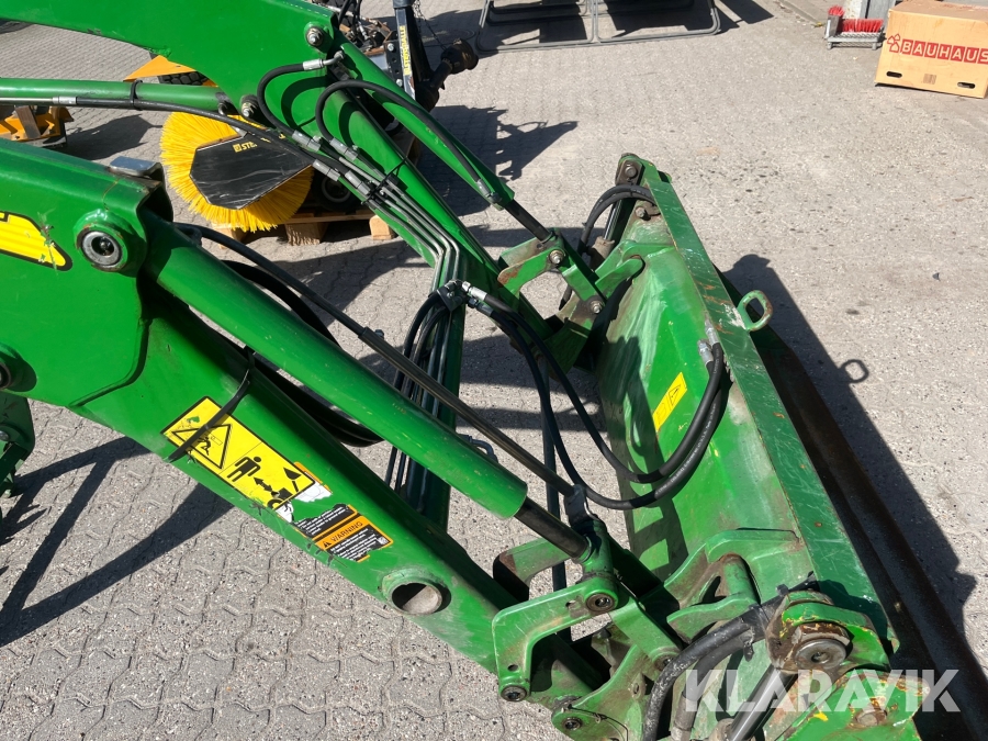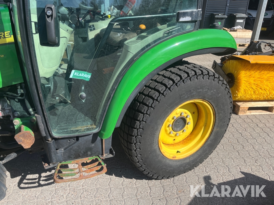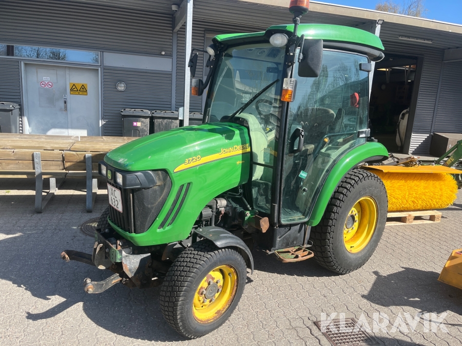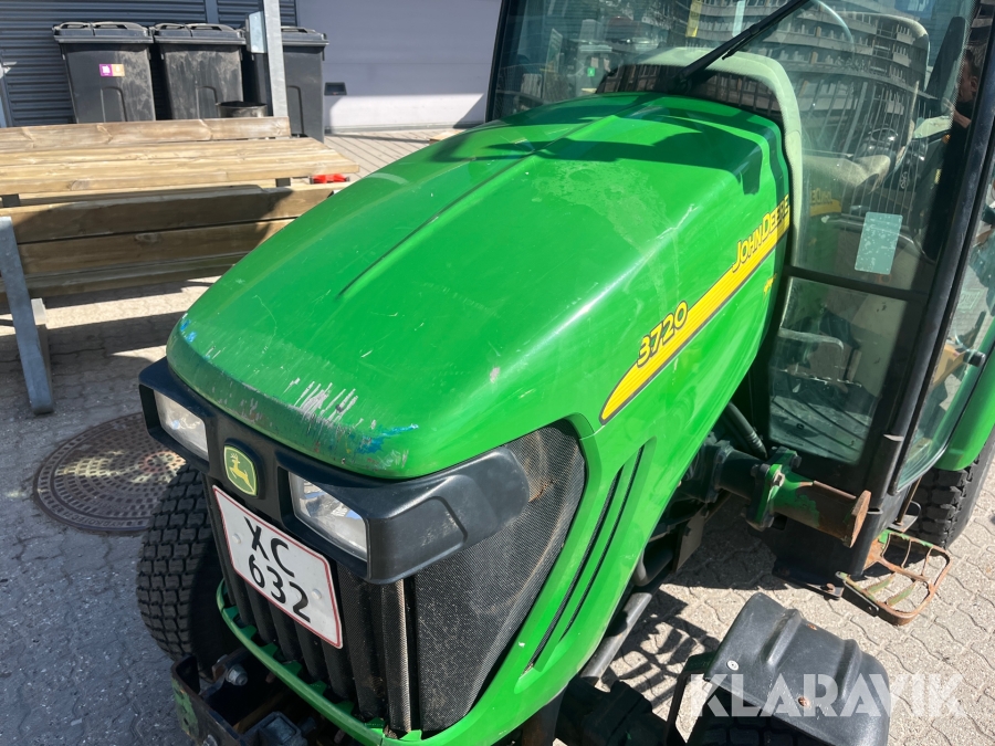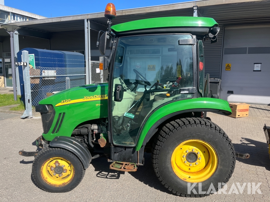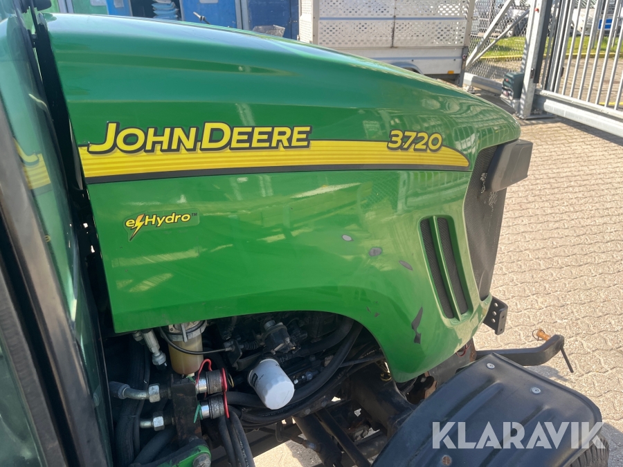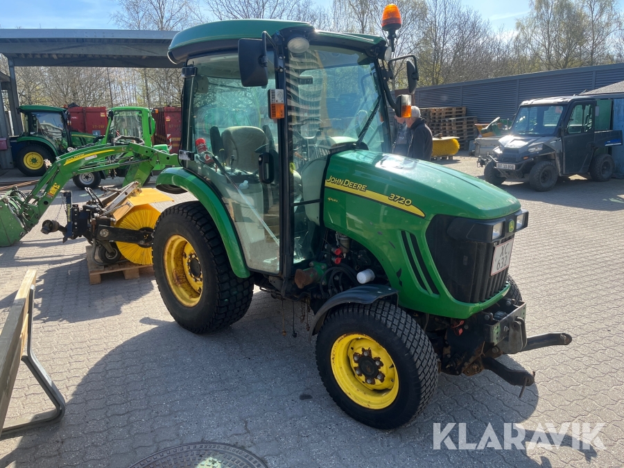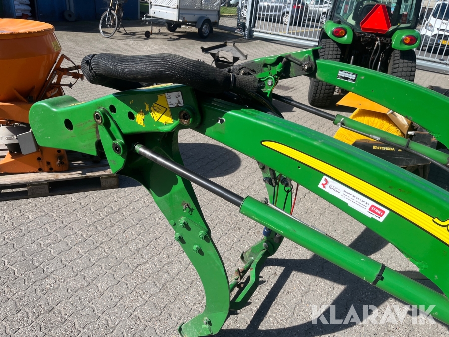 Kompakttraktor John Deere 3720 e-Hydro med frontlæsser kost dozerblad spreder