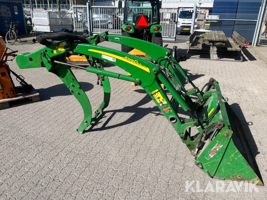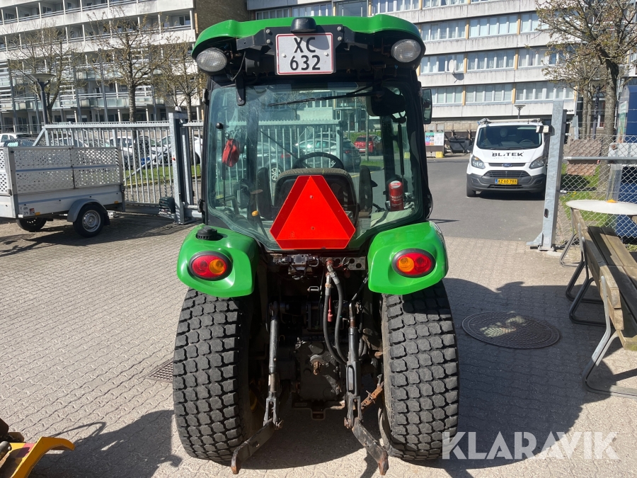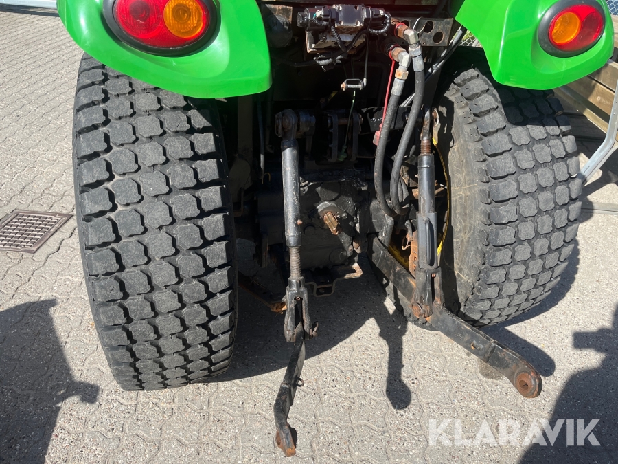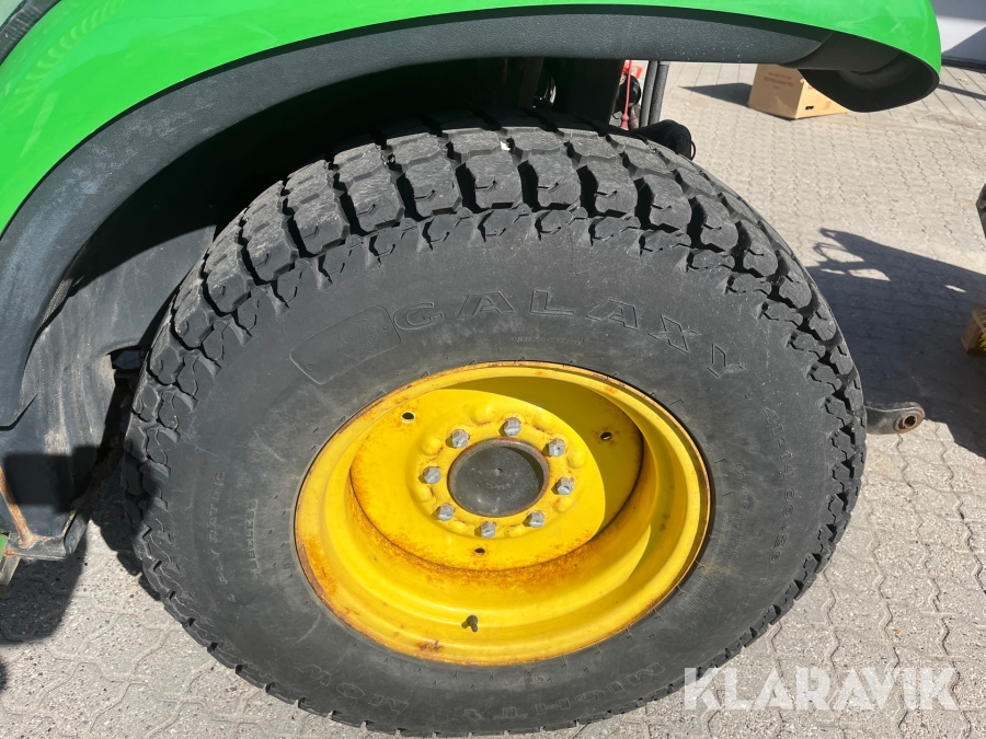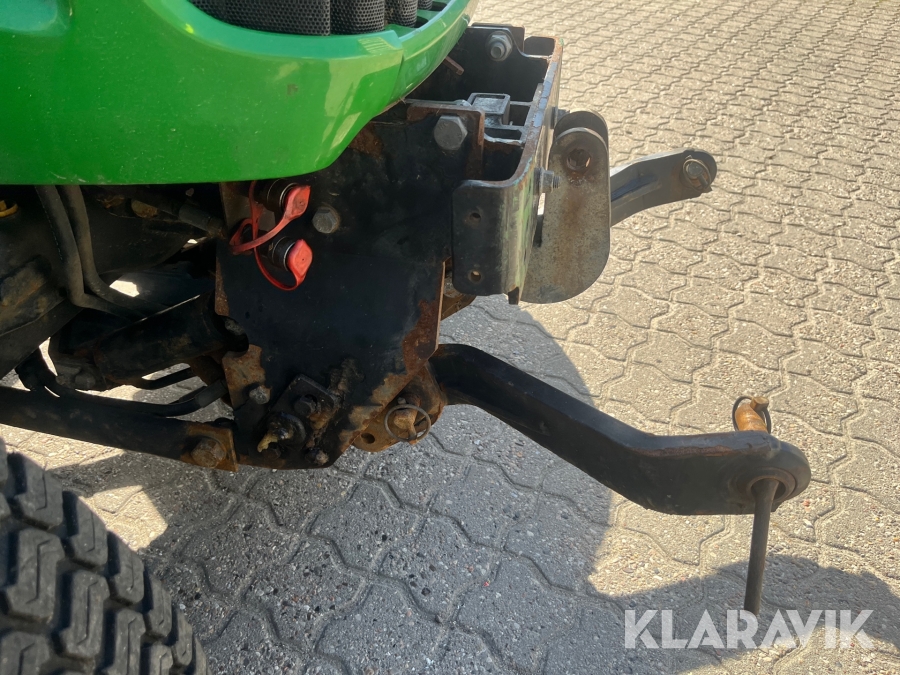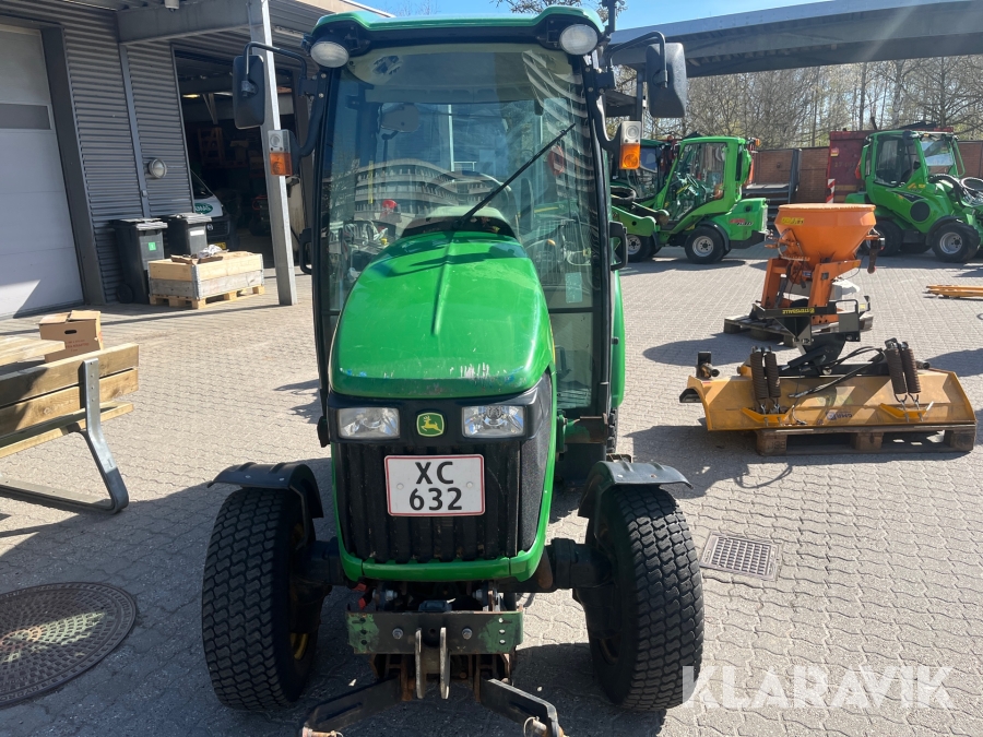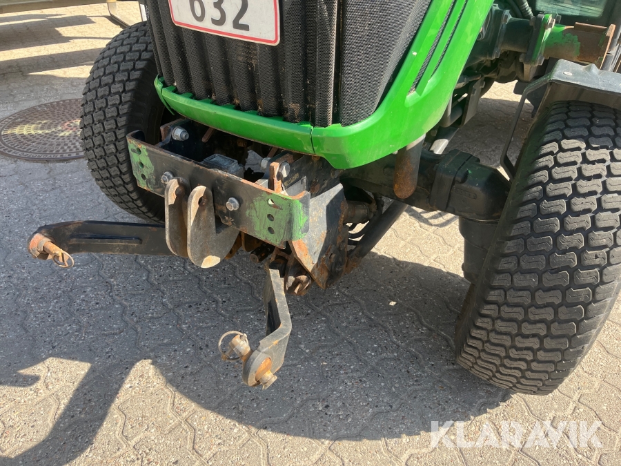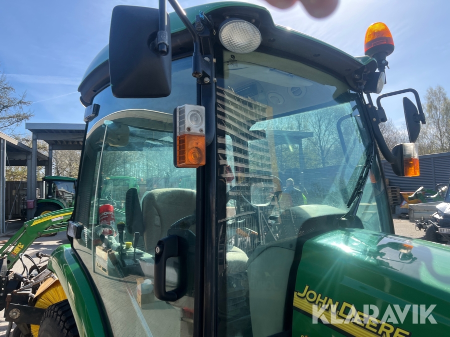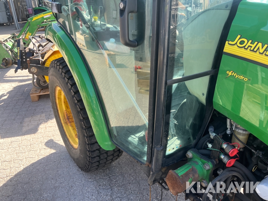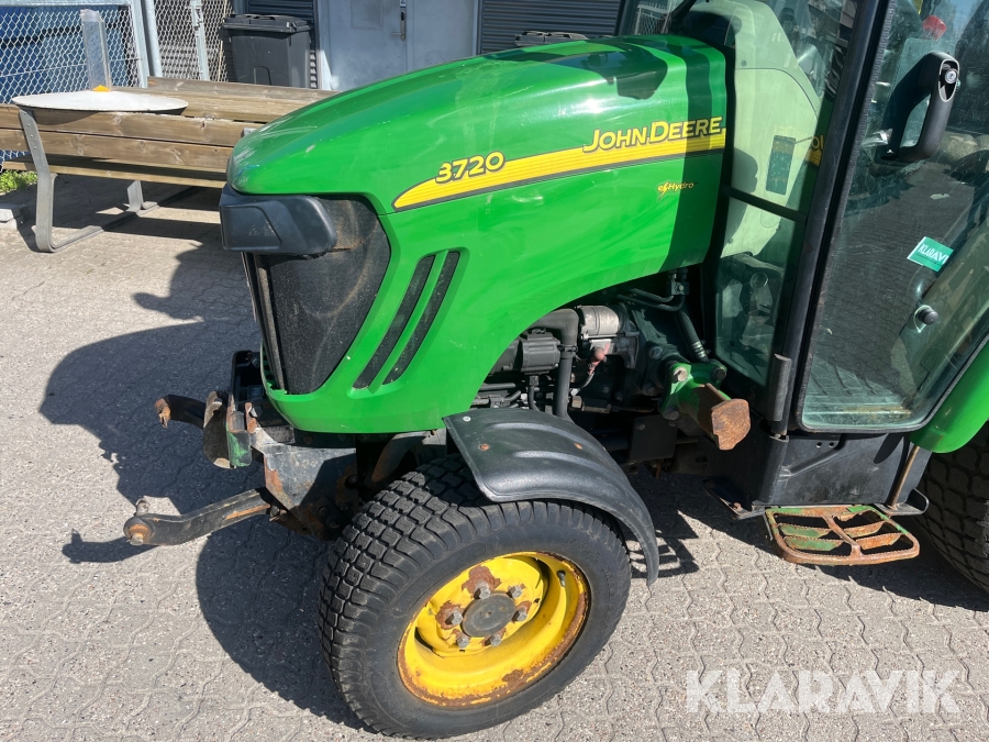 Kompakttraktor John Deere 3720 e-Hydro med frontlæsser kost dozerblad spreder