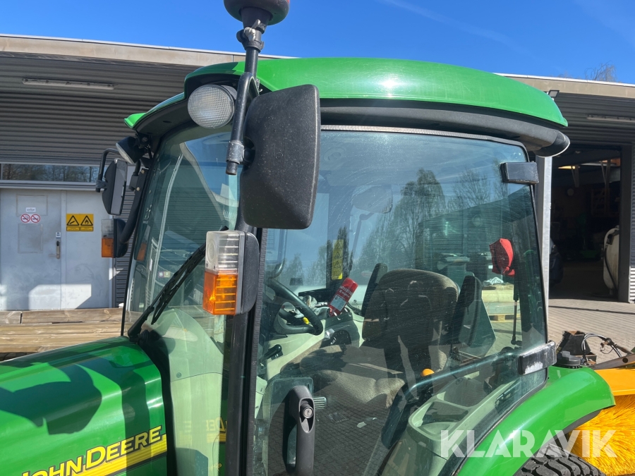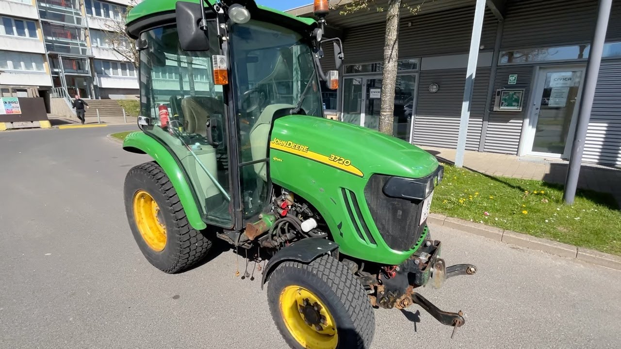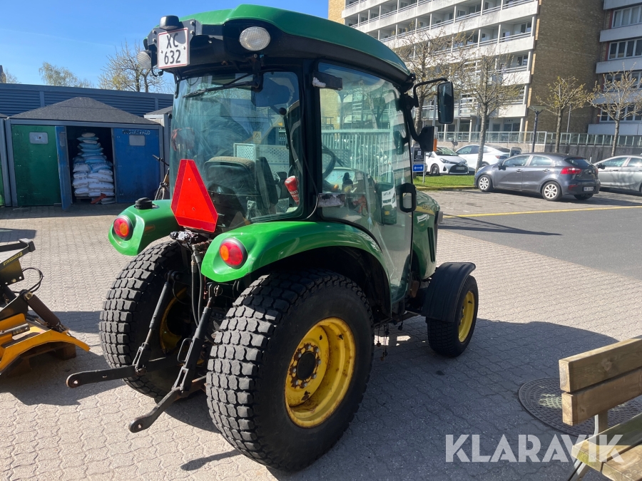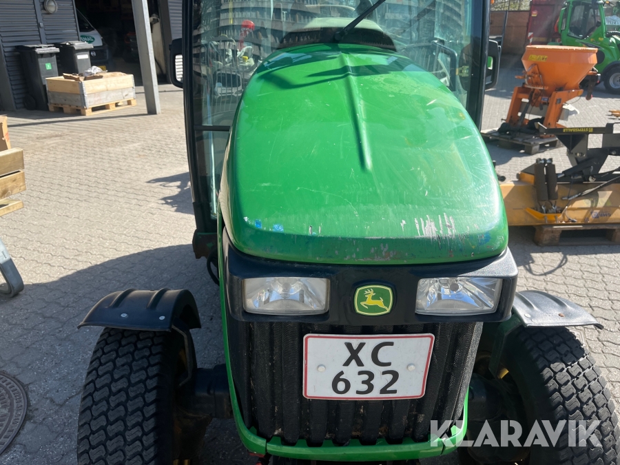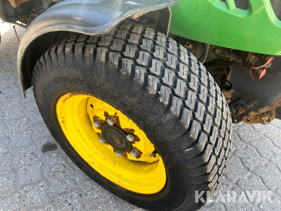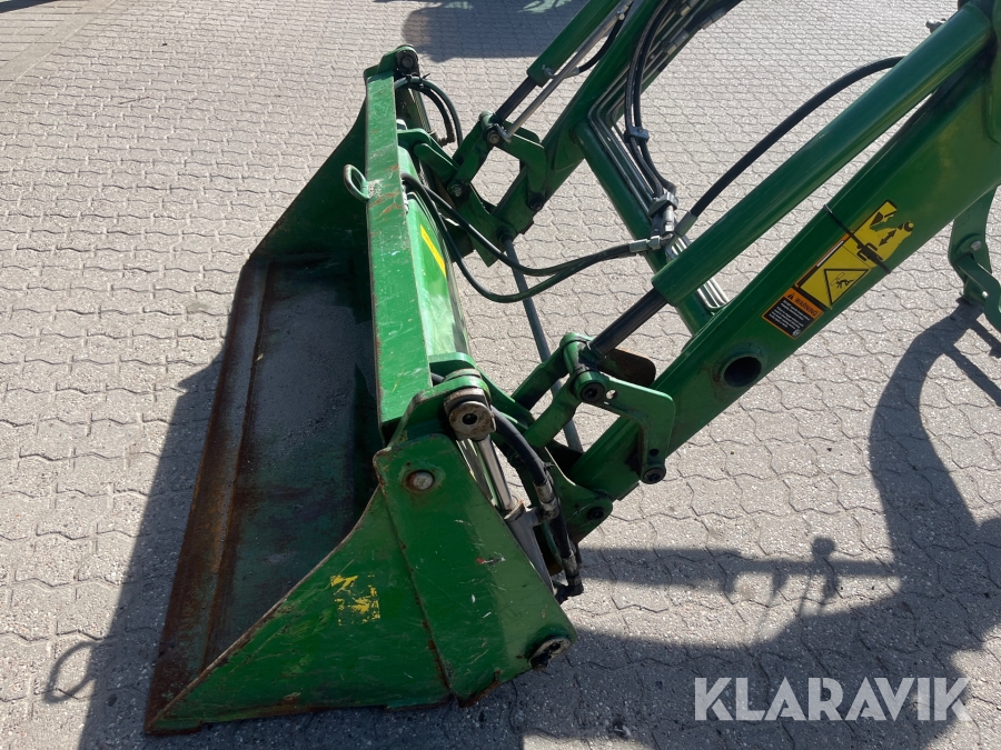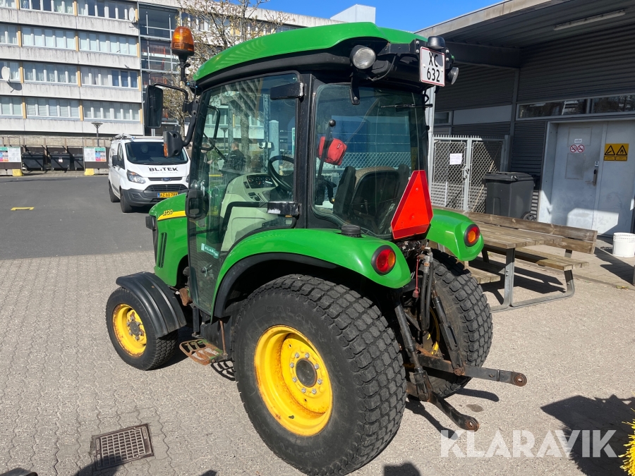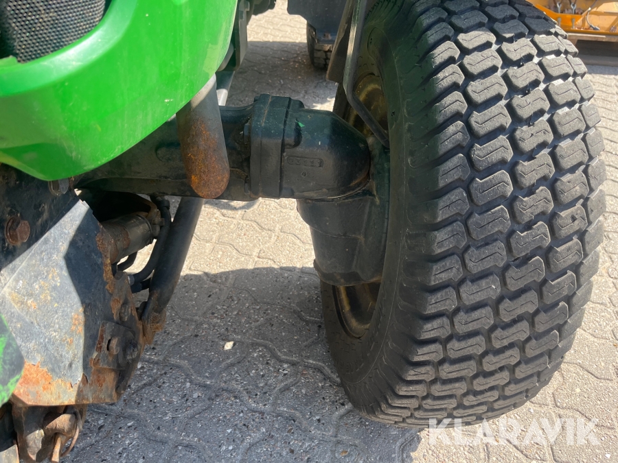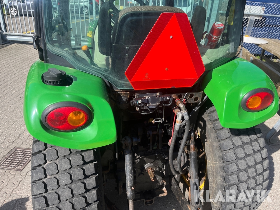 Kompakttraktor John Deere 3720 e-Hydro med frontlæsser kost dozerblad spreder