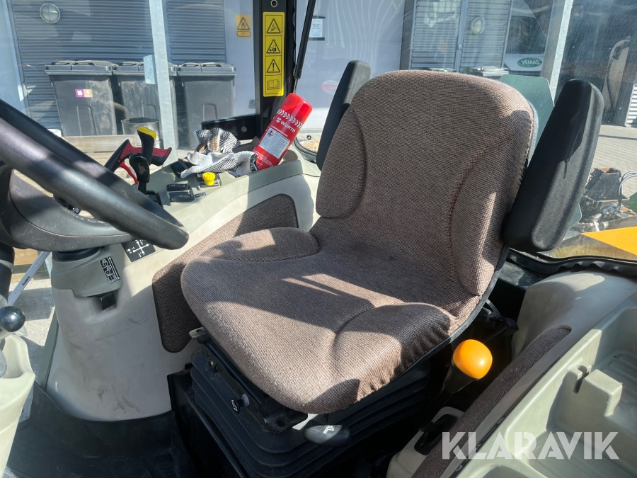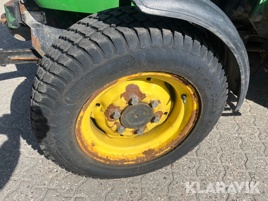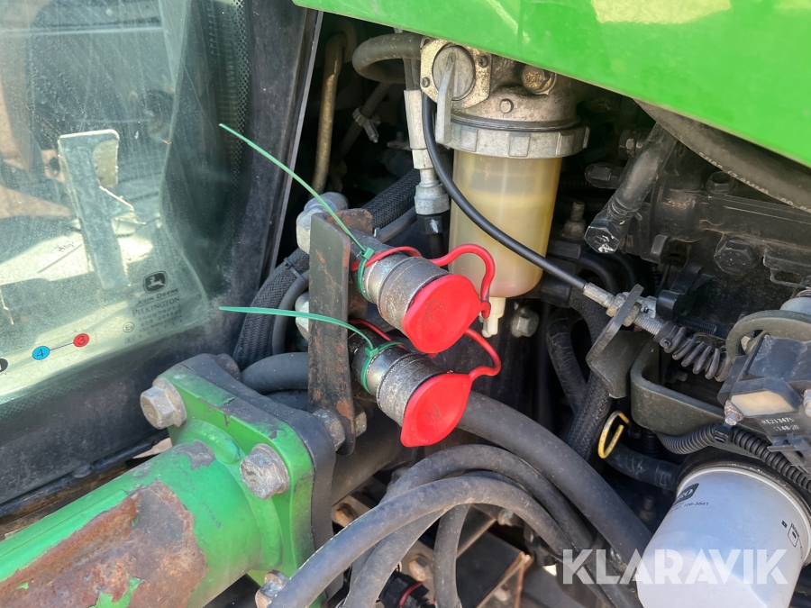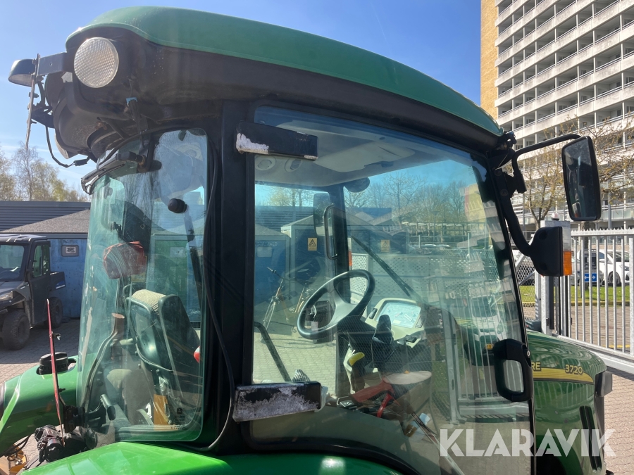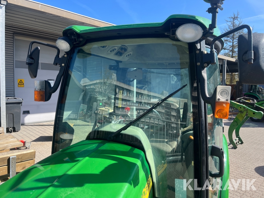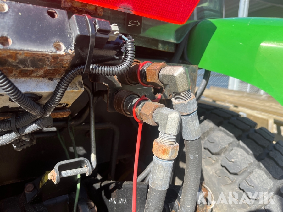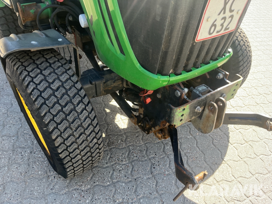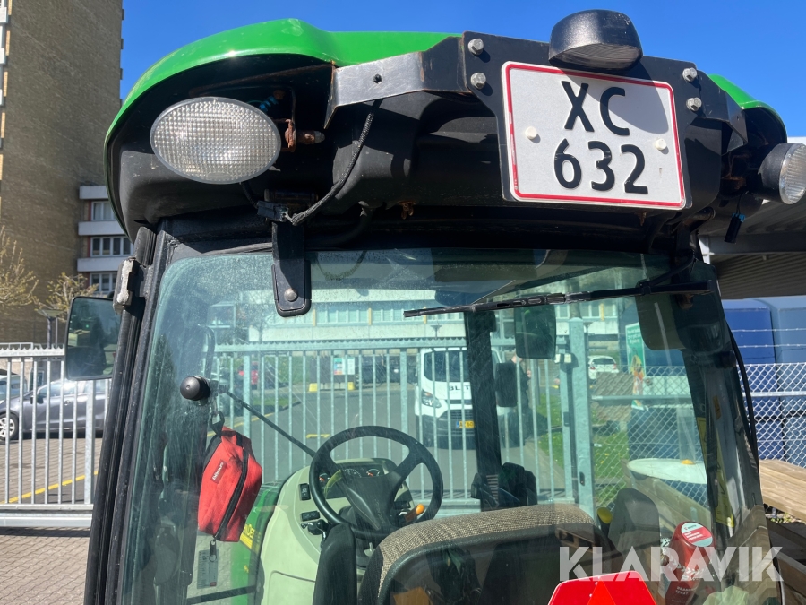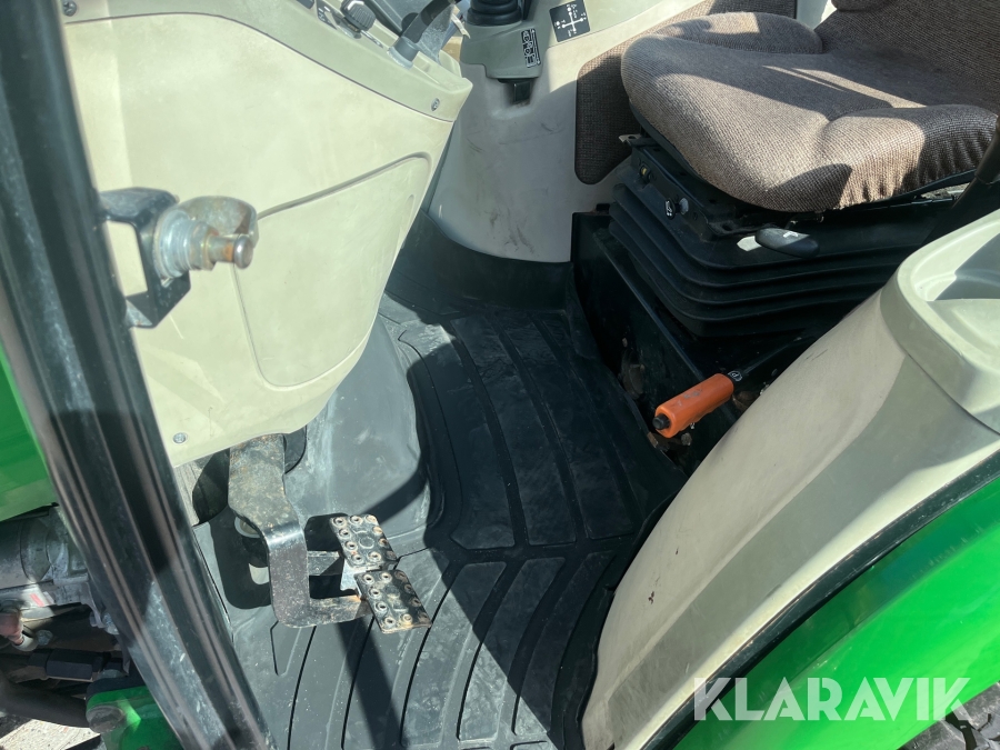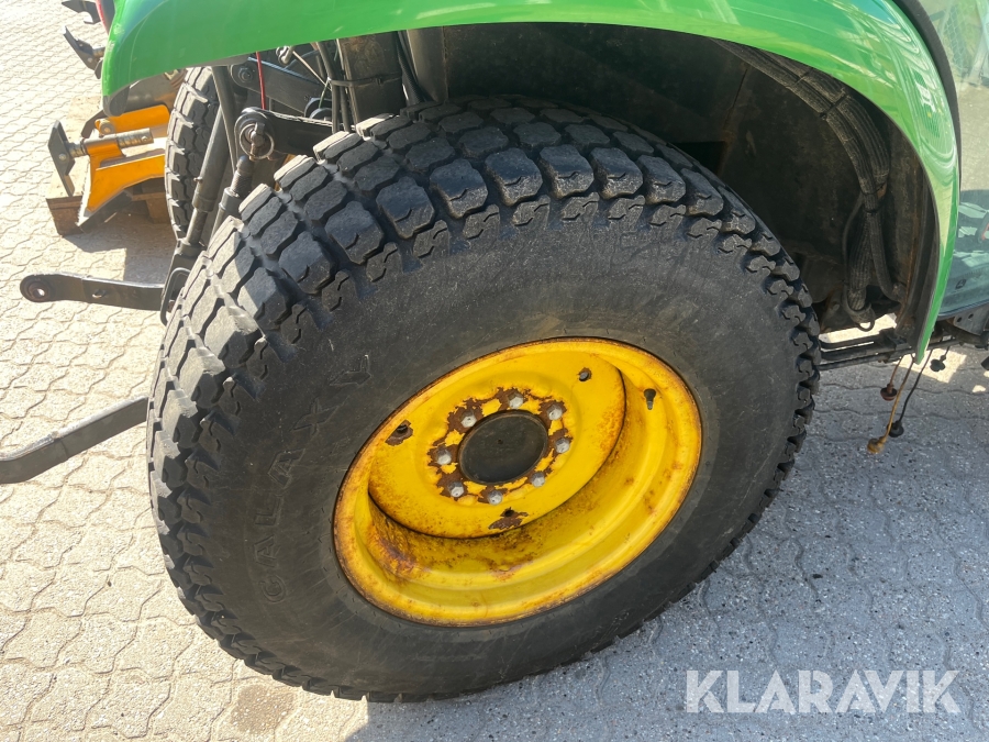 Kompakttraktor John Deere 3720 e-Hydro med frontlæsser kost dozerblad spreder