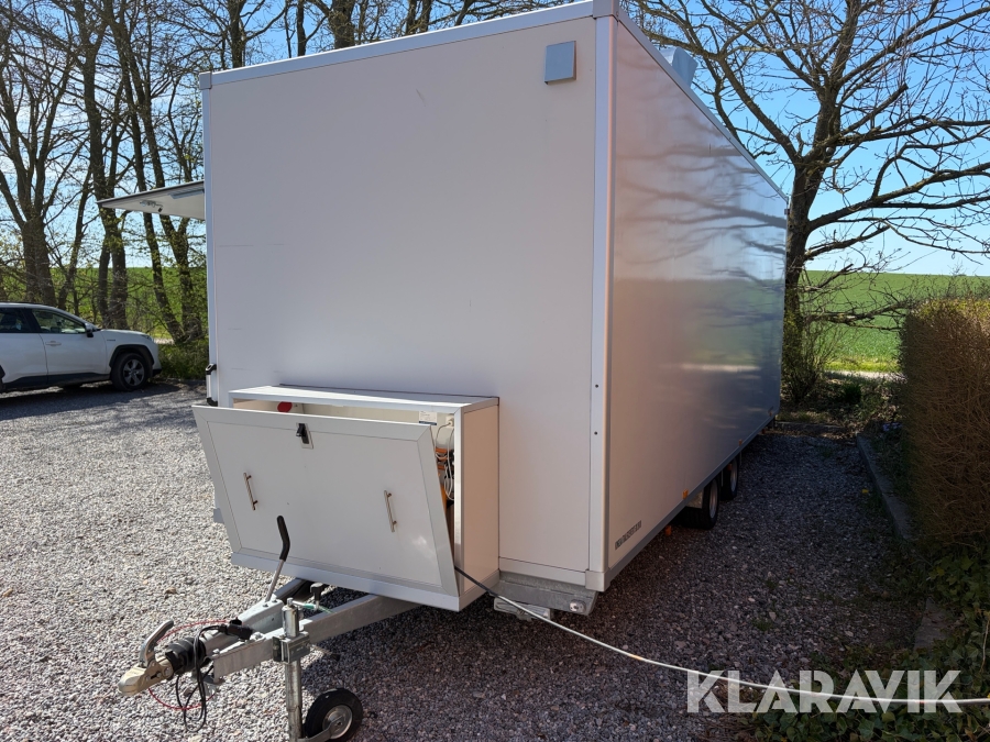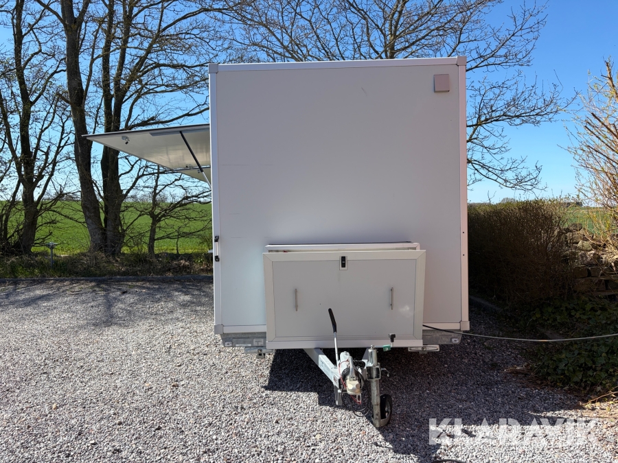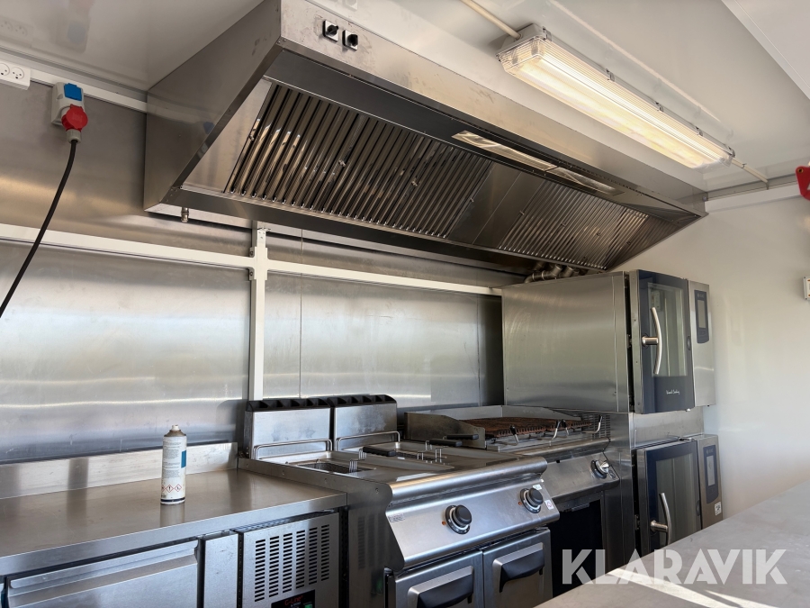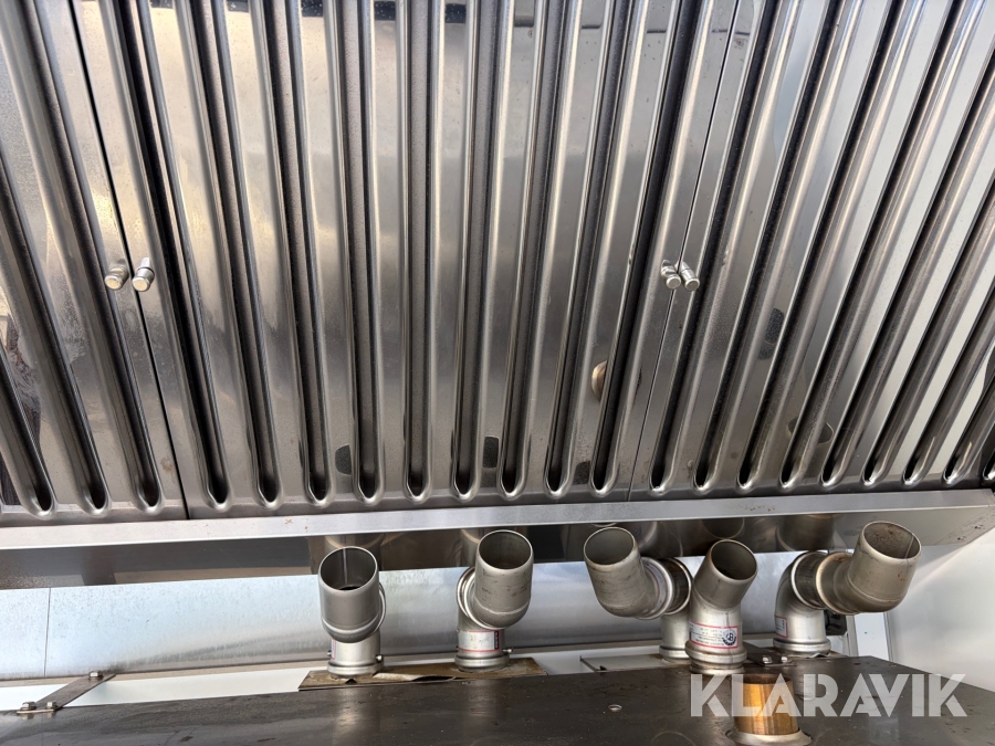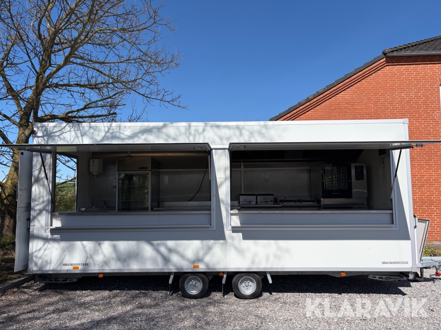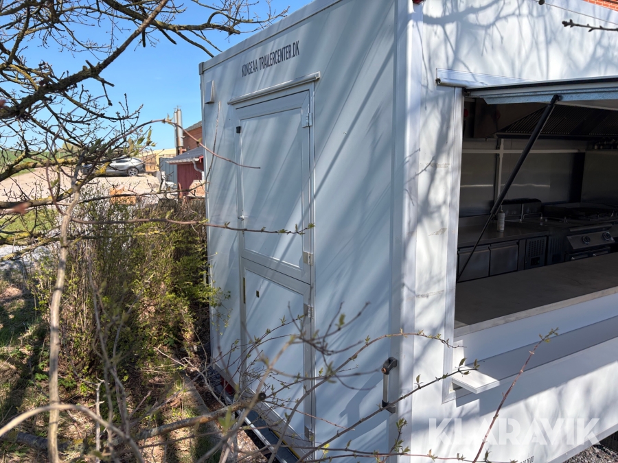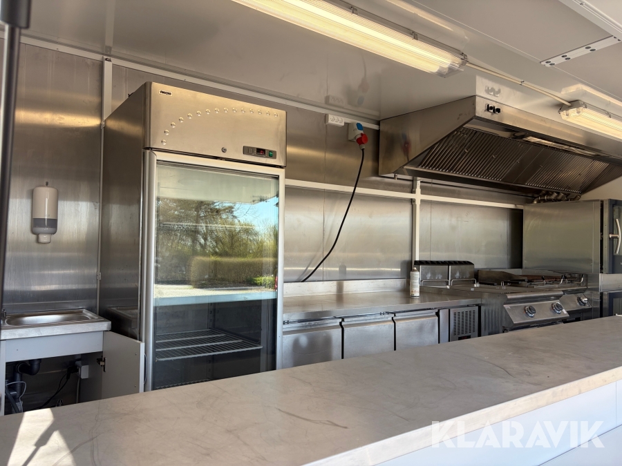 Gennemført Foodtrailer hvor der er tænkt over løsningerne som for eksempel at aftræk til emfang er monteret med springbolte, så hvis der påkøres ryger hætten af uden at ødelægge taget.
