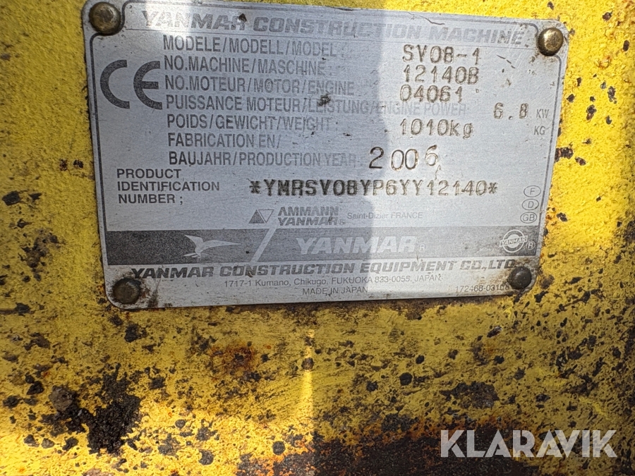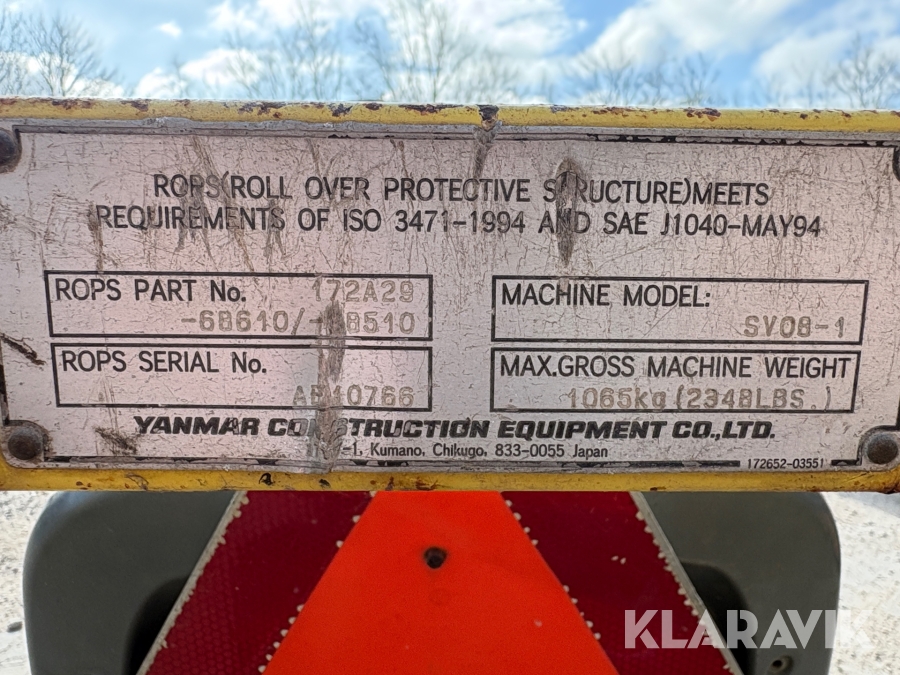 Gravemaskine med løs hydraulik station Yanmar SV08-1