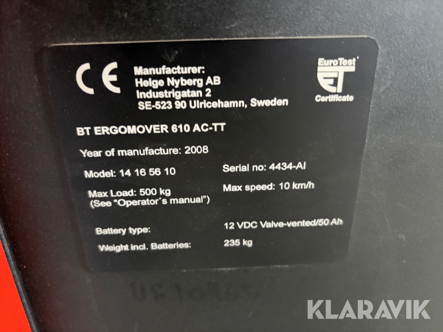 Plukketruck BT Ergomover 610 AC-TT 14165610
