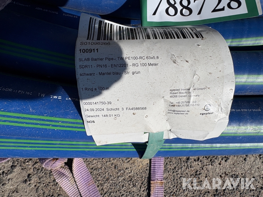 Barriererør Egeplast PE100-RC 63x5,8 - 100 meter