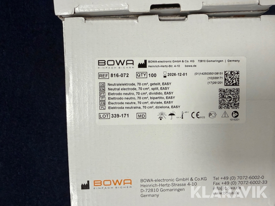 Som køber skal du kontrollere objektet ved afhentning Herefter kan der ikke gøres indvendinger. Hvis objektet adskiller sig væsentligt fra beskrivelsen, skal Klaravik kontaktes inden objektet fragtes (bemærk, at der gælder særskilte vilkår for konkursauktioner). Alle objekt findes hos den sælgende virksomhed, og du som køber har ansvar for afhentning og fragt. Som køber har du 12 dage til at afhente objektet, efter auktionen er afsluttet.