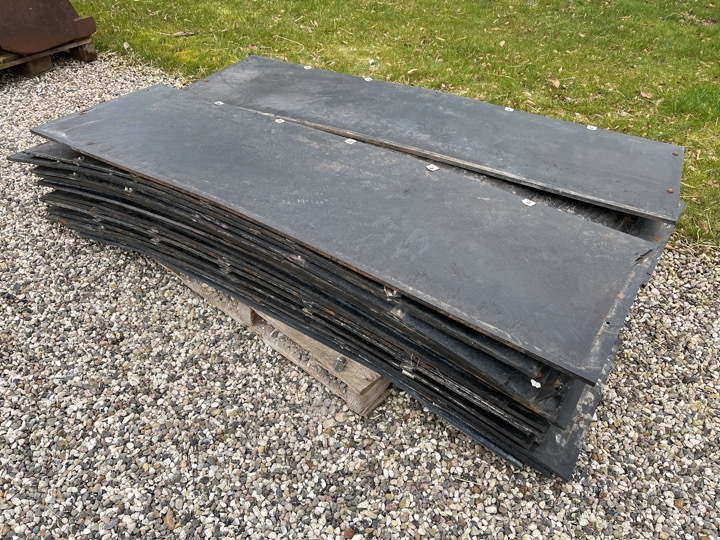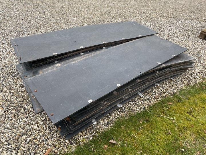 Oprindeligt været plader i staldinventar men sælger har senest anvendt dem som køreplader.