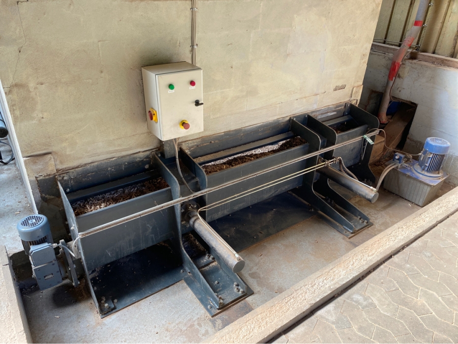 Pille/ flis fyr med skrabeanlæg til lager og snegl.