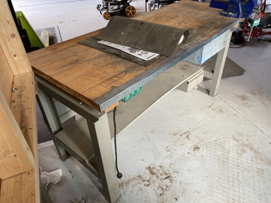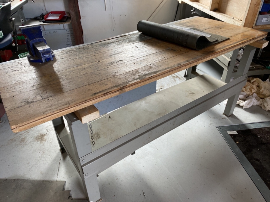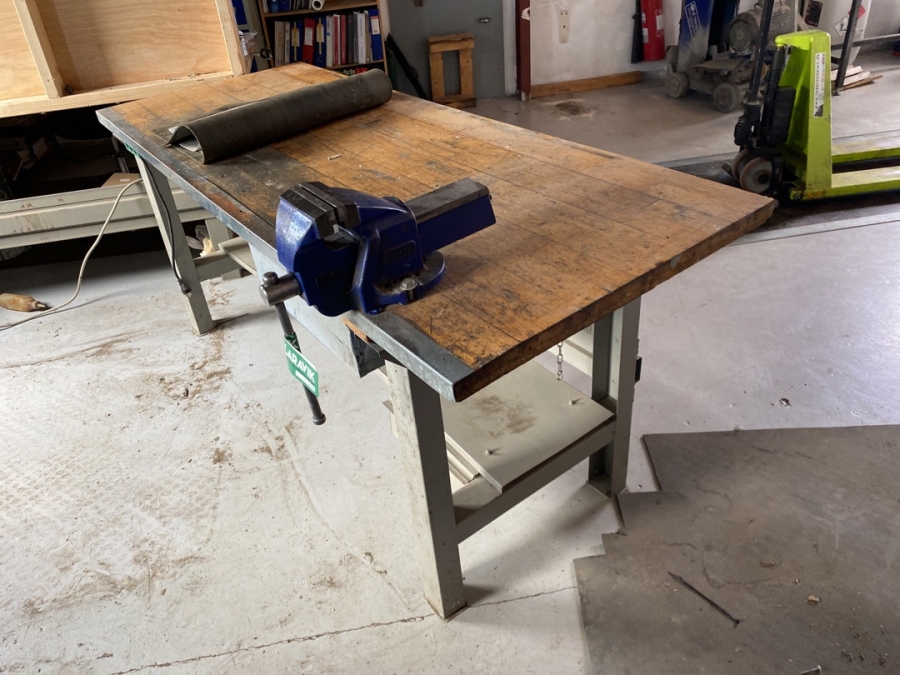 Værkstedsbord med skruestik
