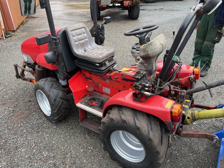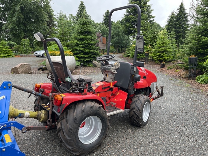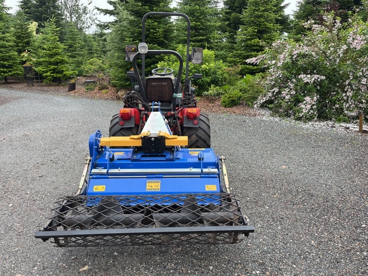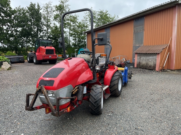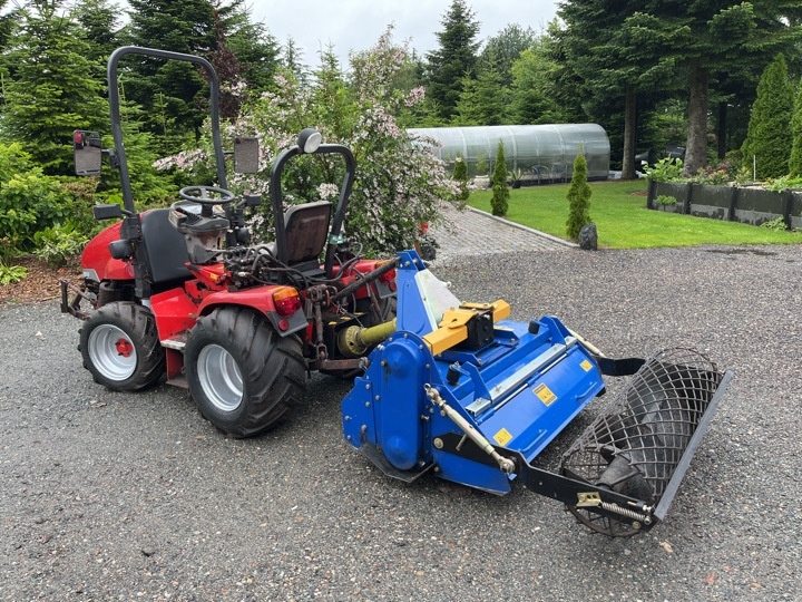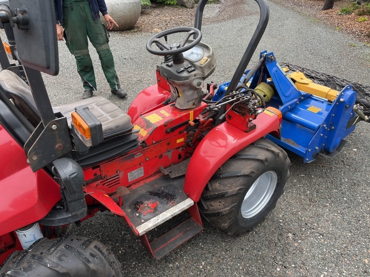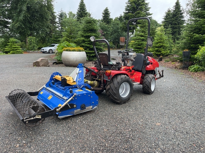 Kompakt traktor med stennedlægningsfræser